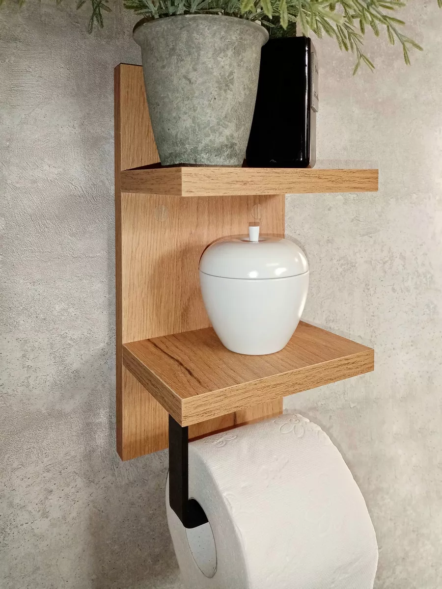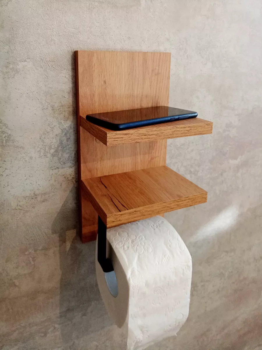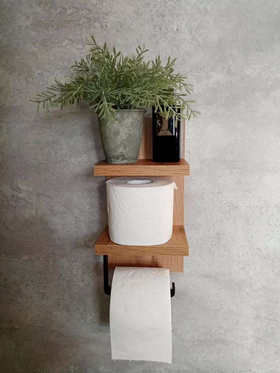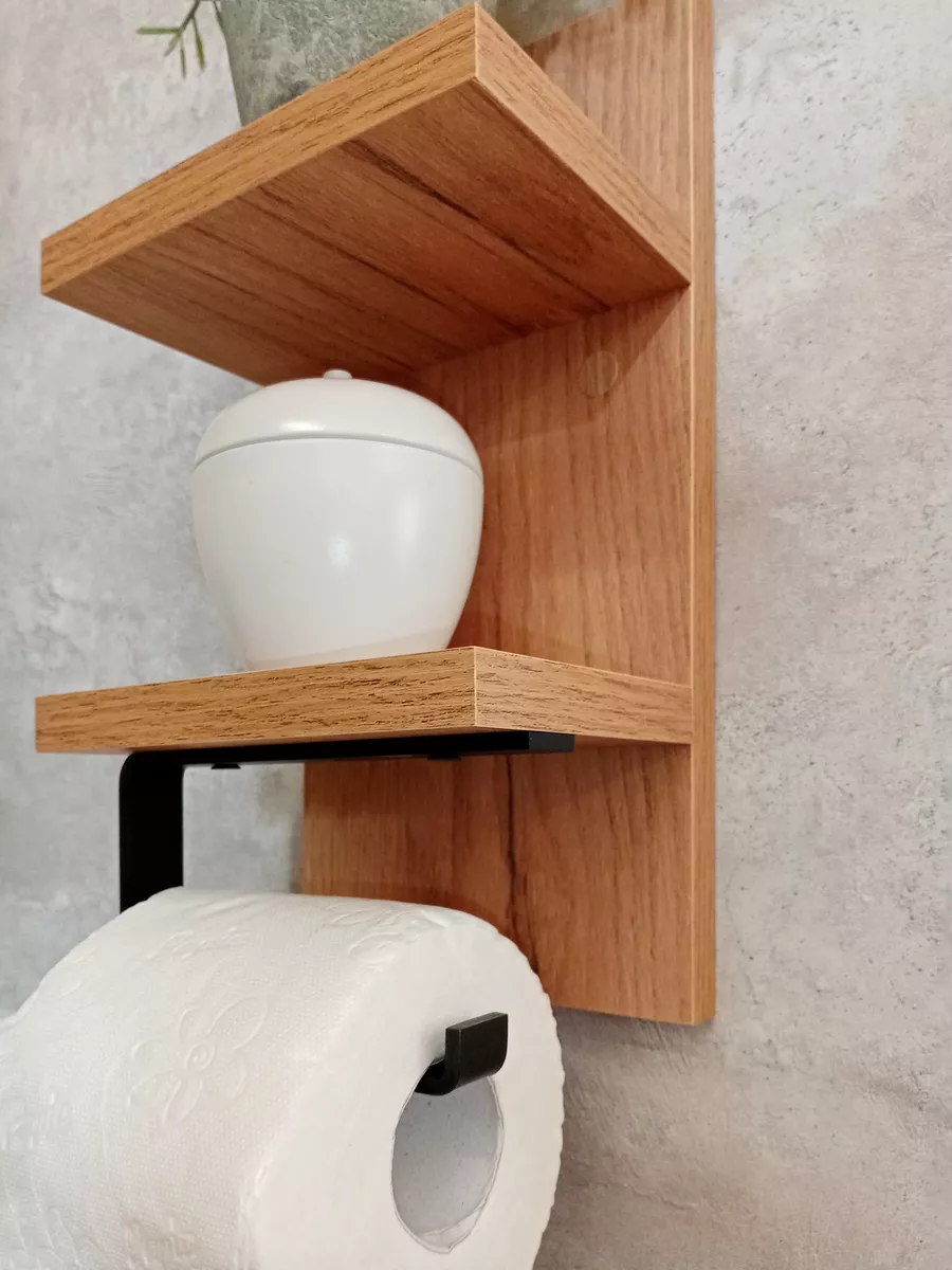 Полочка с держателем для туалетной бумаги отлично впишется в интерьер любой туалетной комнаты. Полка выглядит аккуратно и стильно. Она компактная и не занимает много места. На туалетной полочке будет удобно хранить освежитель воздуха или запасной рулон бумаги, а так же у вас всегда будет под рукой место, куда можно положить телефон.