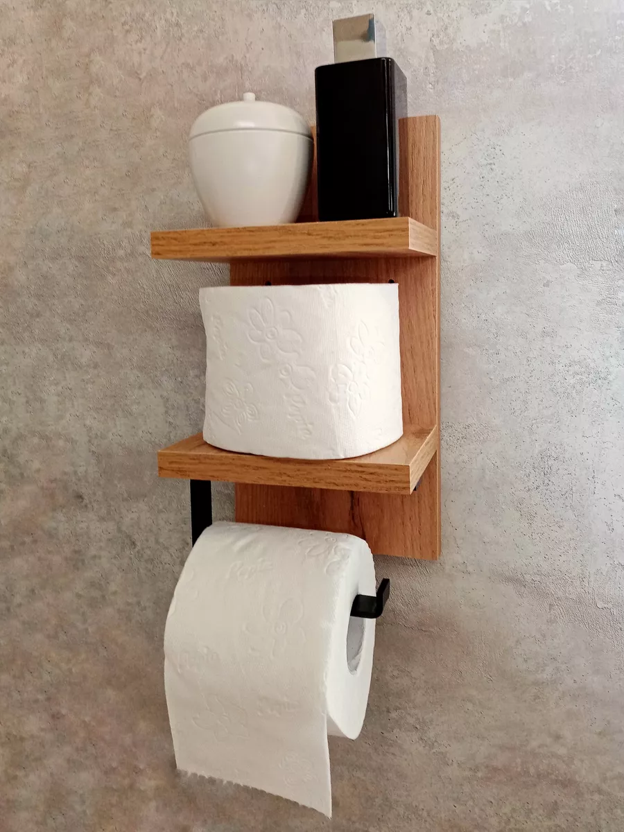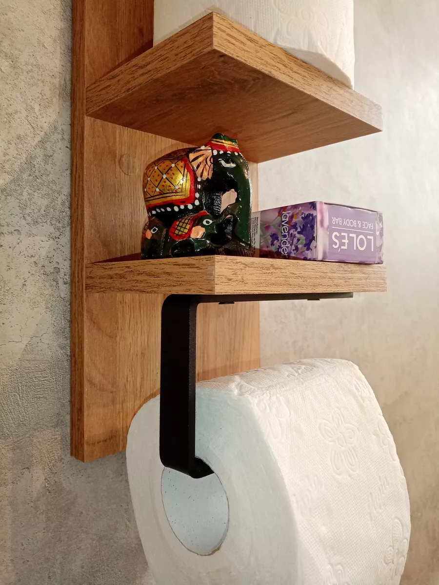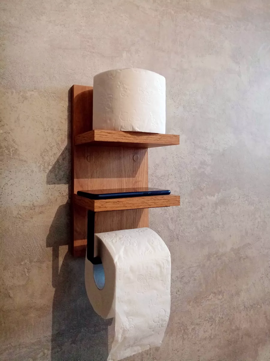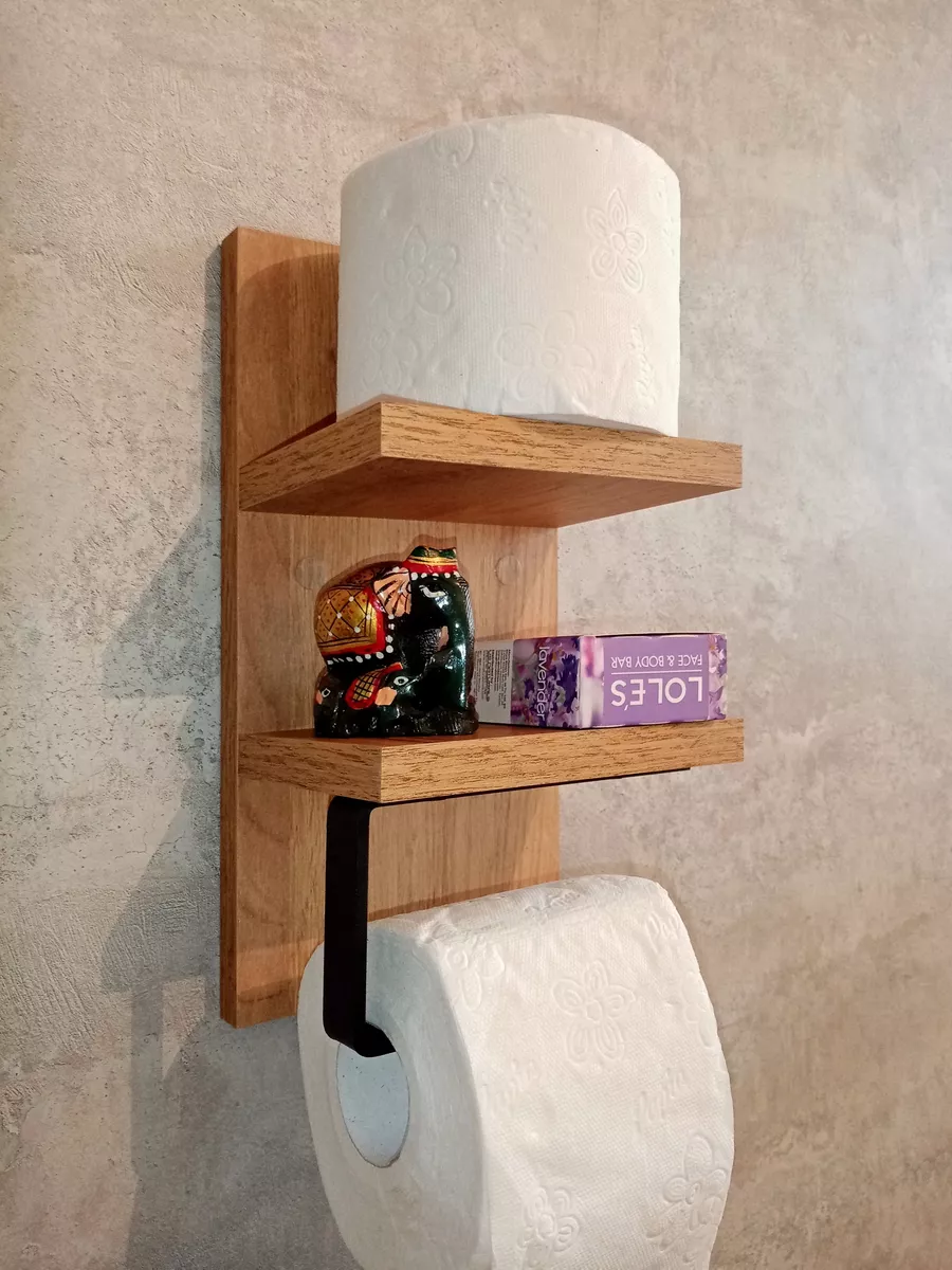 Полочка с держателем для туалетной бумаги отлично впишется в интерьер любой туалетной комнаты. Полка выглядит аккуратно и стильно. Она компактная и не занимает много места. На туалетной полочке будет удобно хранить освежитель воздуха или запасной рулон бумаги, а так же у вас всегда будет под рукой место, куда можно положить телефон.