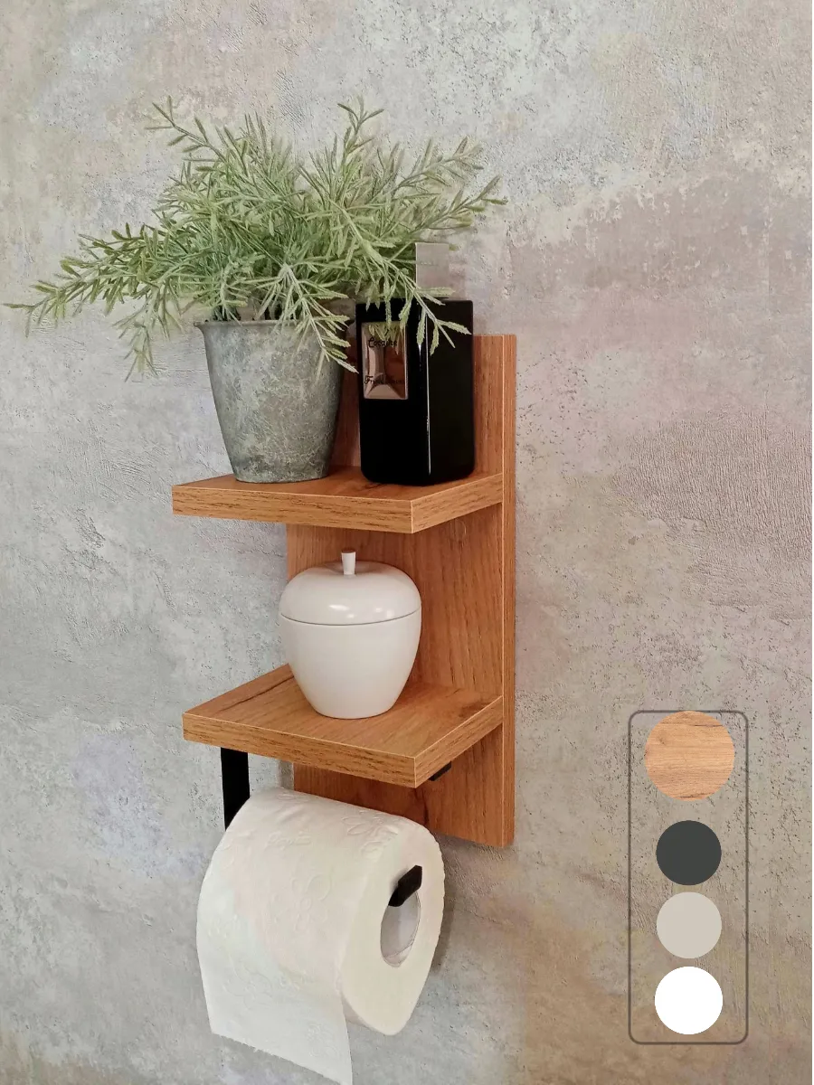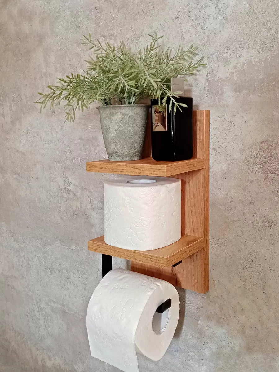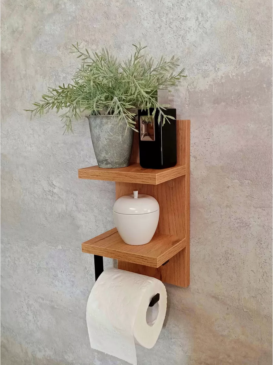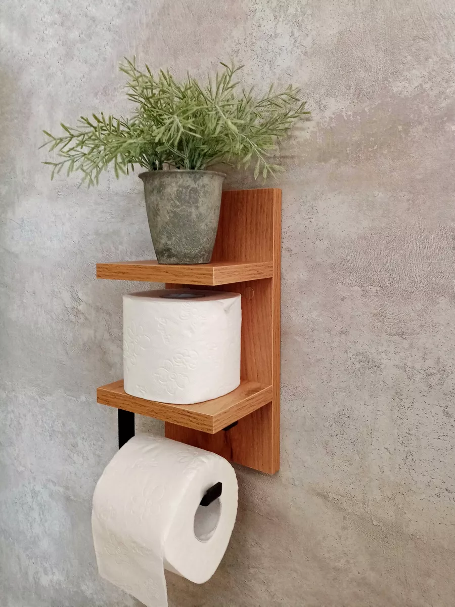 Полочка с держателем для туалетной бумаги отлично впишется в интерьер любой туалетной комнаты. Полка выглядит аккуратно и стильно. Она компактная и не занимает много места. На туалетной полочке будет удобно хранить освежитель воздуха или запасной рулон бумаги, а так же у вас всегда будет под рукой место, куда можно положить телефон.