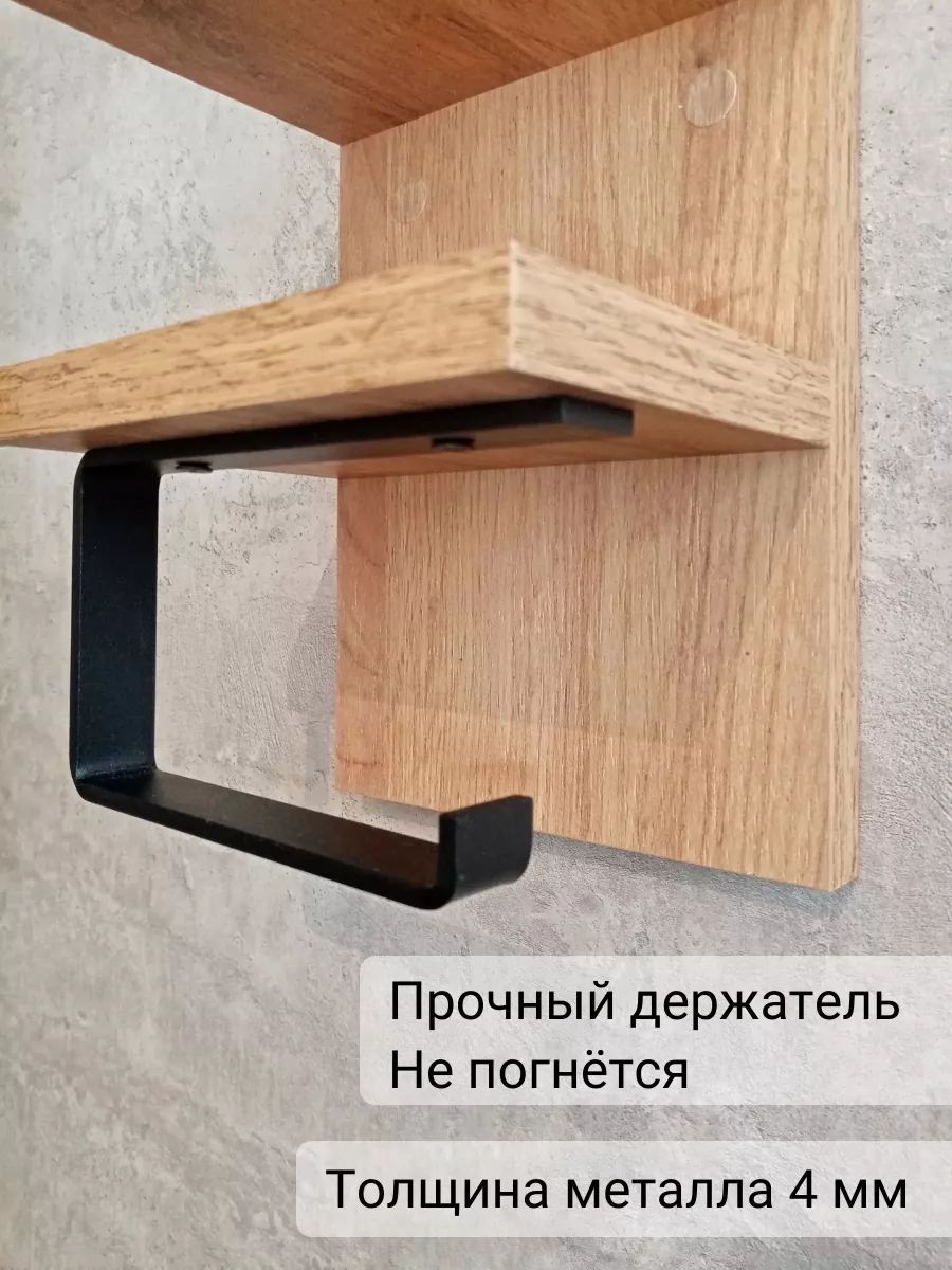 Держатель для туалетной бумаги изготовлен из металла, толщиной 4 мм. Он прочный и не погнется при долгом использовании. Металл тщательно обработан, без зазубрин и заусенцев. Покрыт порошковой краской, устойчивой к повреждениям. Рулон бумаги легко вращается на кронштейне. Поместится даже самый пухлый рулончик.
