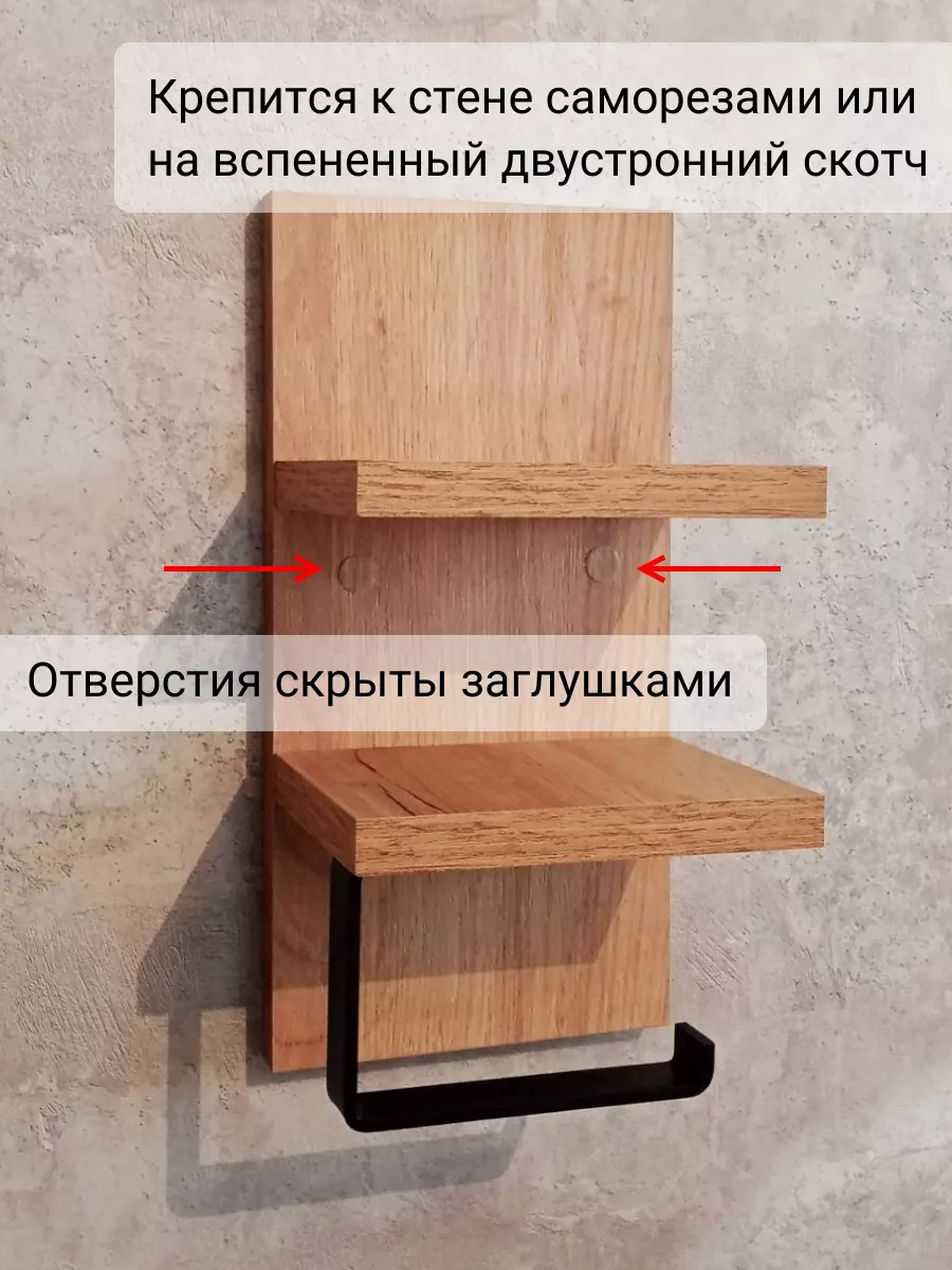 Крепить полку можно как на саморезы, так и на вспененный двусторонний скотч, если вы не хотите сверлить в стене отверстия. Скотч в комплект не входит.