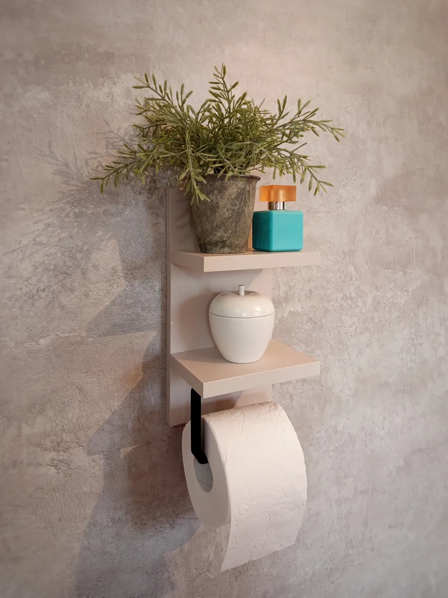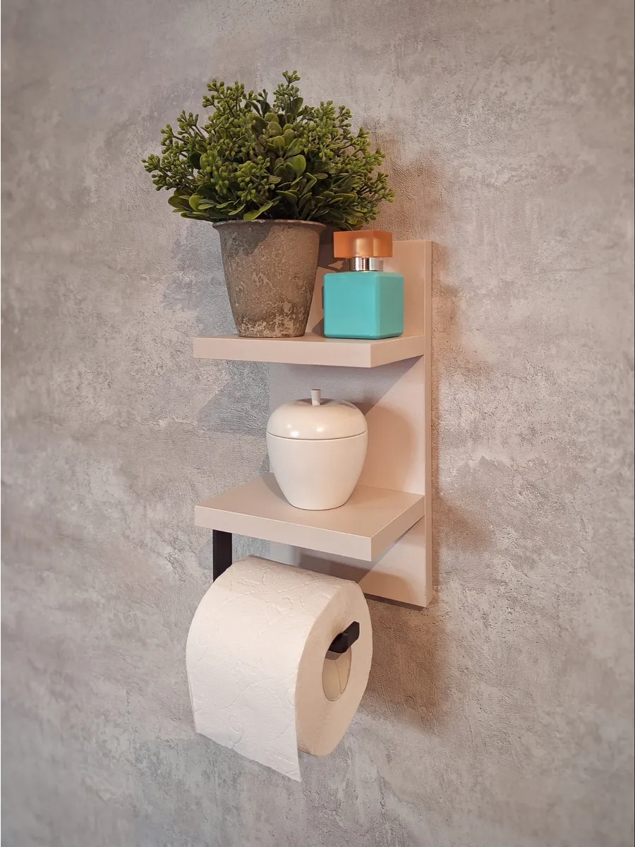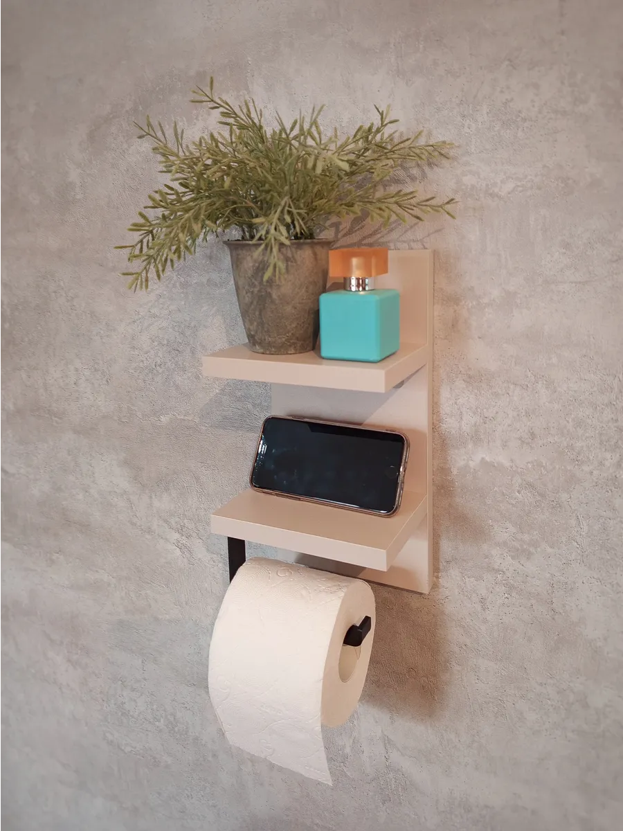Полочка с держателем для туалетной бумаги отлично впишется в интерьер любой туалетной комнаты. Полка выглядит аккуратно и стильно. Она компактная и не занимает много места. На туалетной полочке будет удобно хранить освежитель воздуха или запасной рулон бумаги, а так же у вас всегда будет под рукой место, куда можно положить телефон.