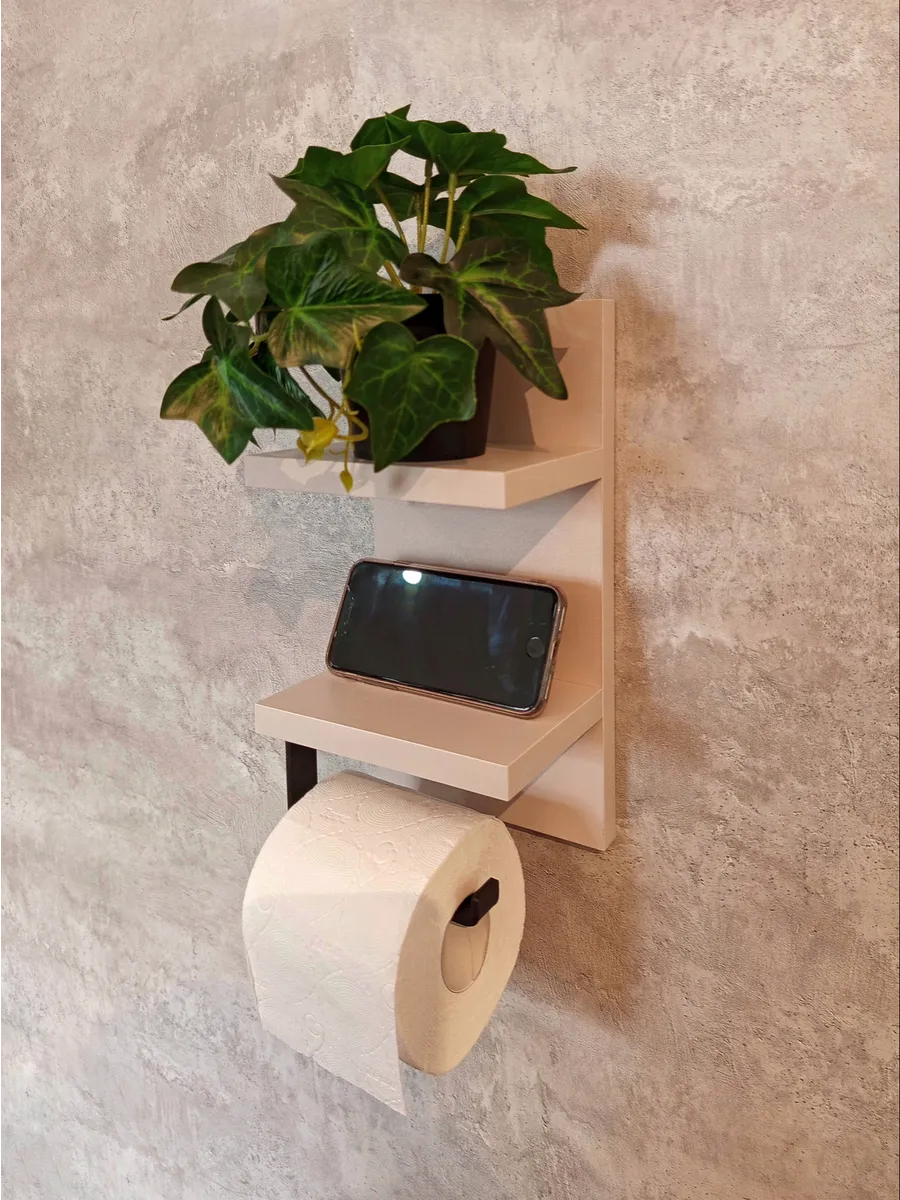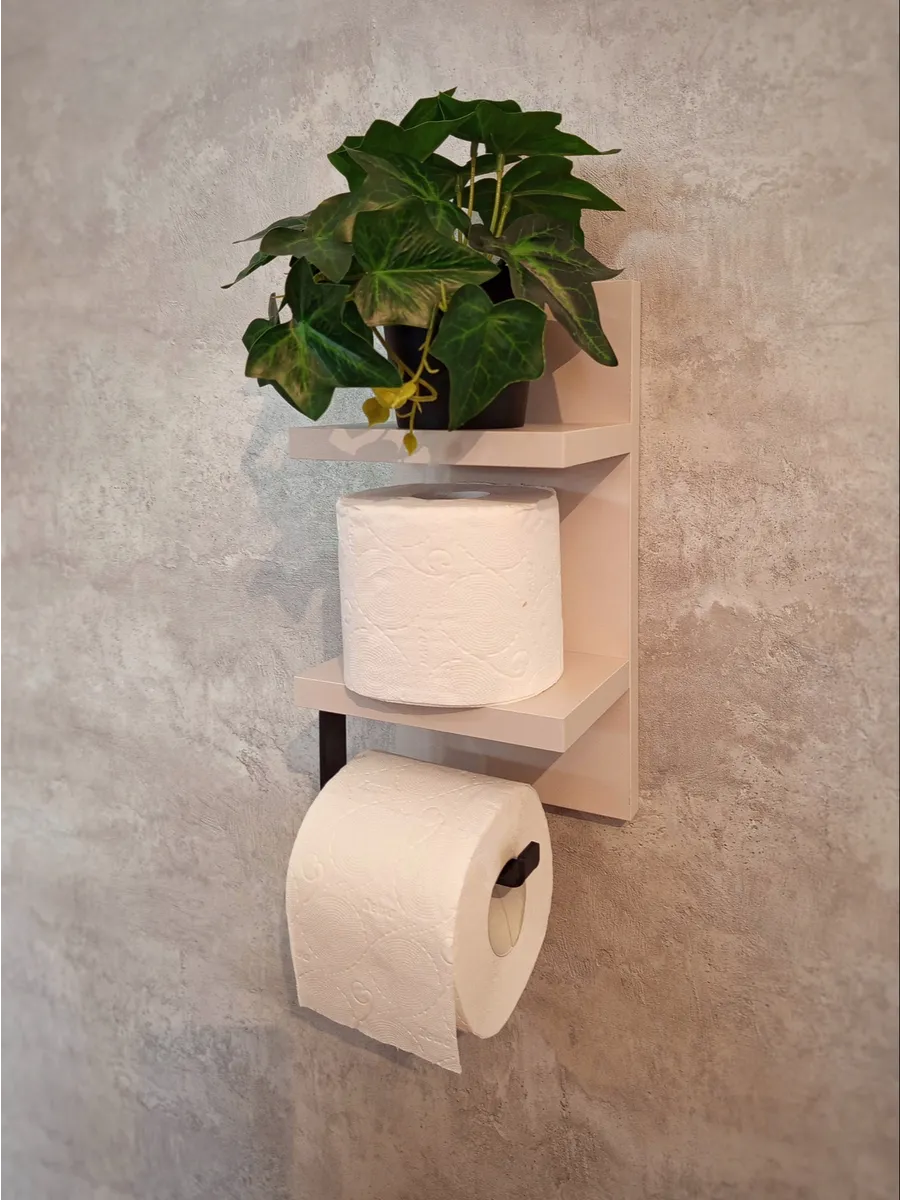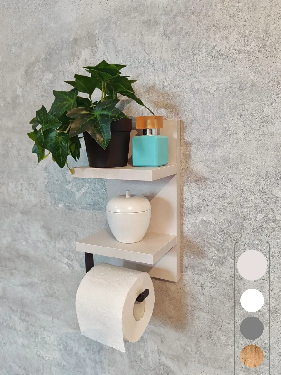 Полочка с держателем для туалетной бумаги отлично впишется в интерьер любой туалетной комнаты. Полка выглядит аккуратно и стильно. Она компактная и не занимает много места. На туалетной полочке будет удобно хранить освежитель воздуха или запасной рулон бумаги, а так же у вас всегда будет под рукой место, куда можно положить телефон.