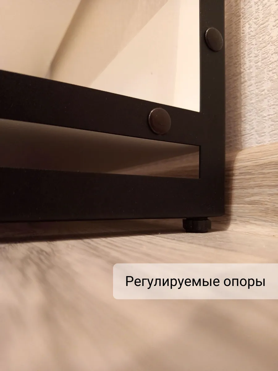 Этажерка оснащена регулируемыми опорами, с помощью которых можно отрегулировать устойчивость и высоту обувницы.