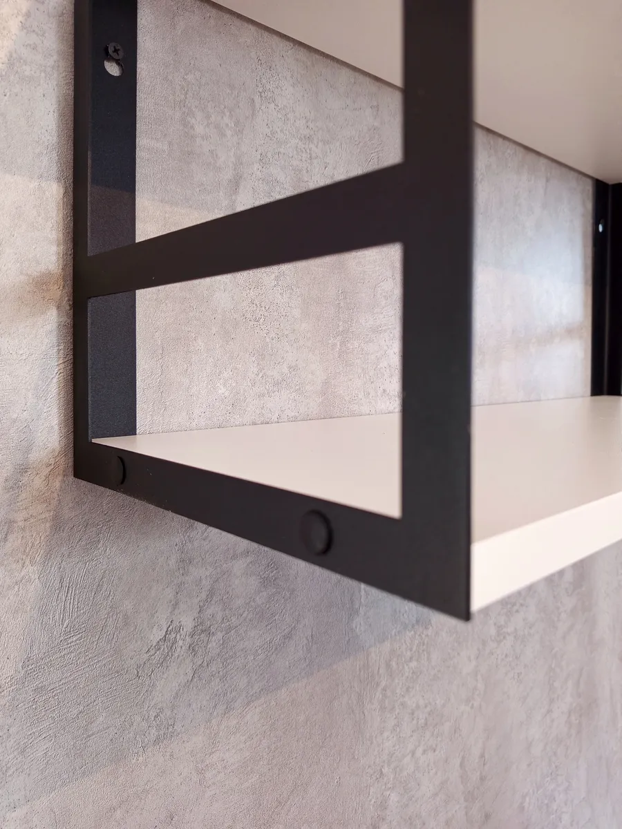 Боковины полки выполнены из крепкого металла толщиной 1,5 мм и покрыты износостойкой порошковой краской, устойчивой к механическим повреждениям и выцветанию.