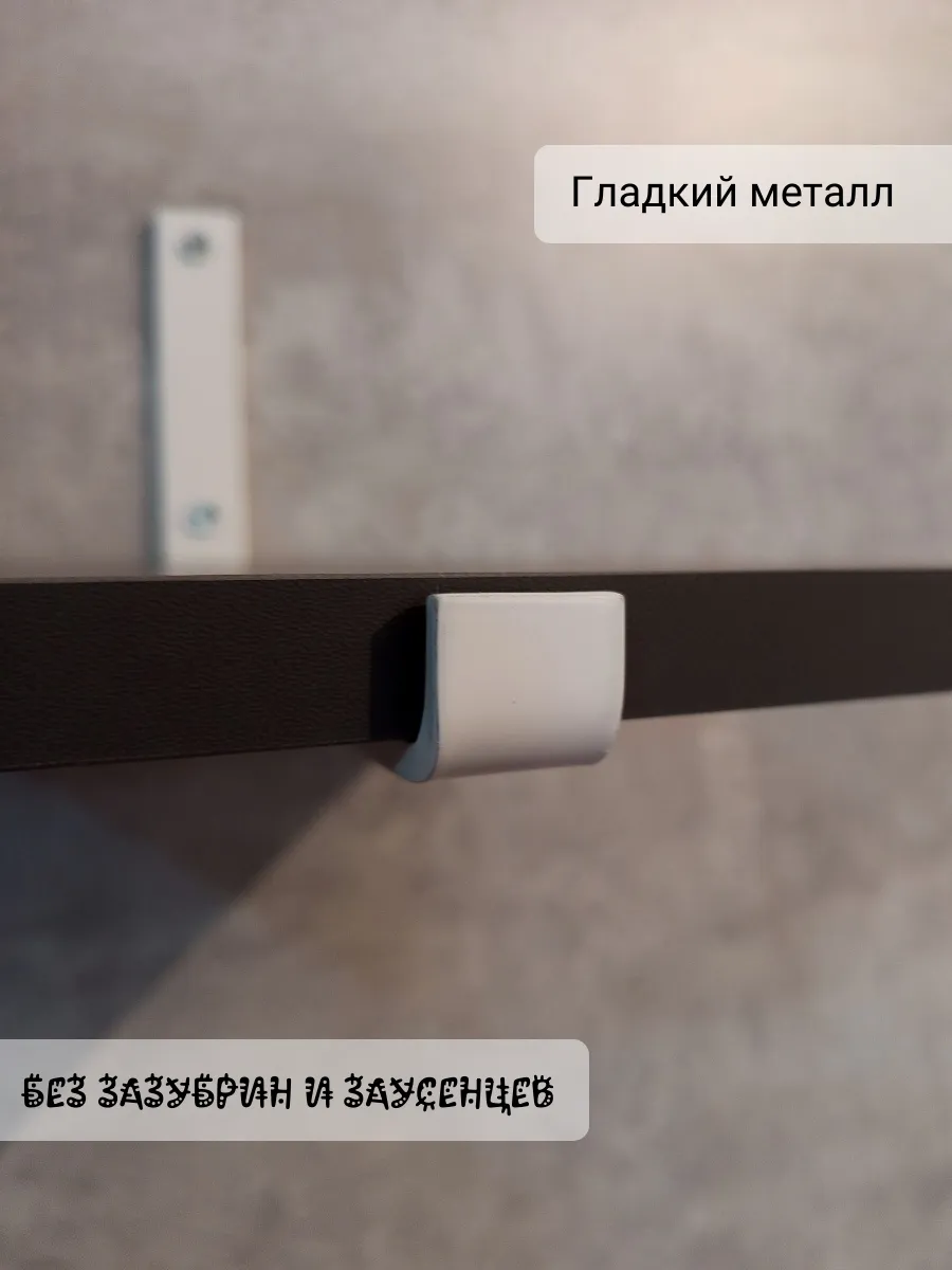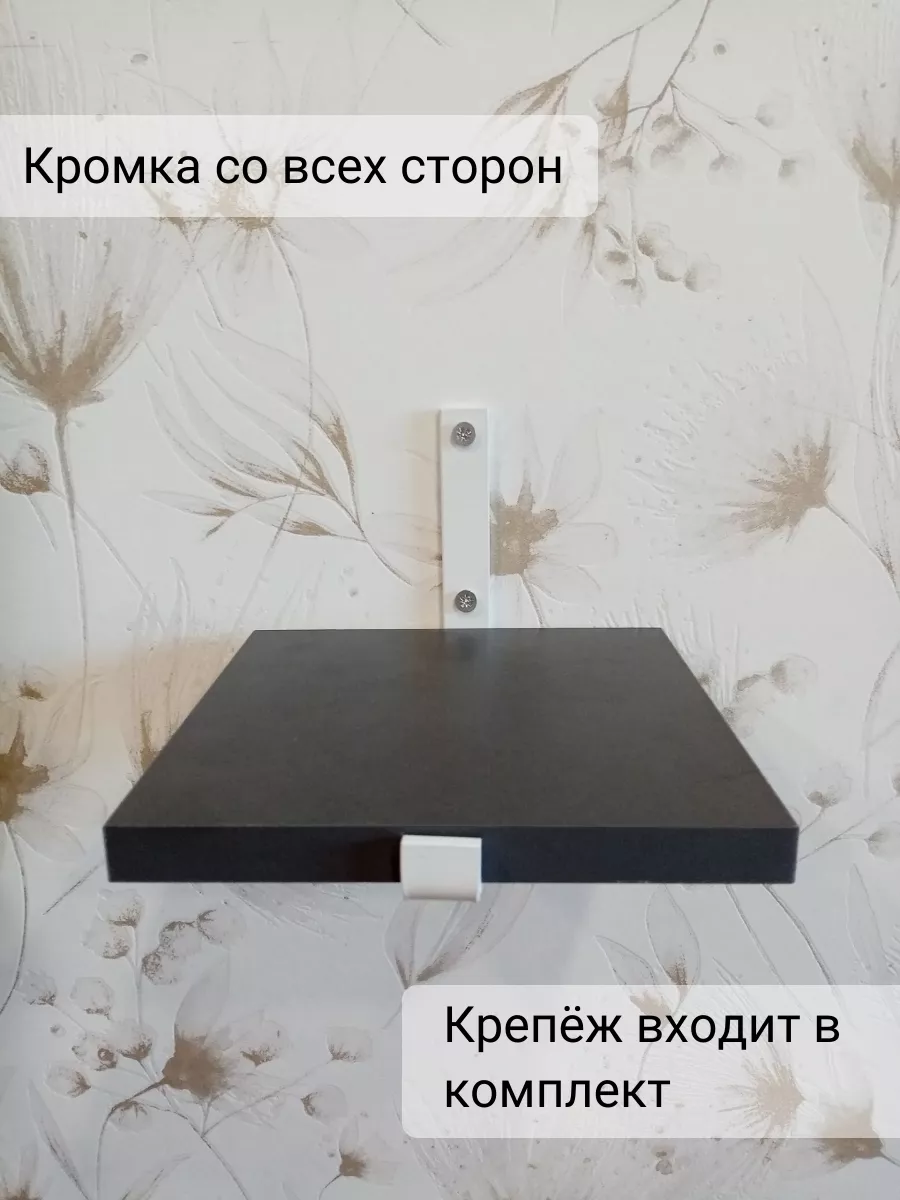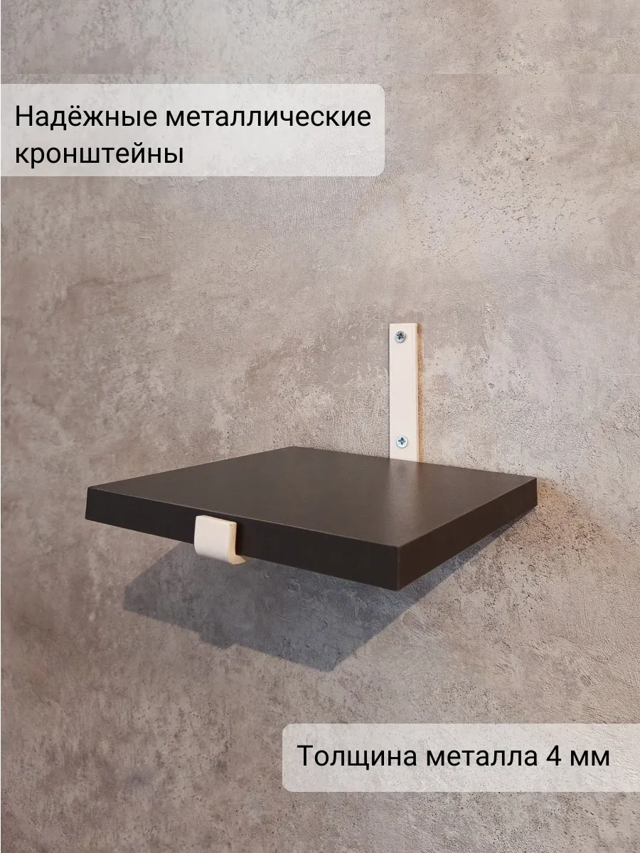 Полки изготовлены из ЛДСП безопасного класса, толщиной 16 мм. Металлические кронштейны покрыты матовой порошковой краской, устойчивой к повреждениям. Толщина металла 4 мм. Кронштейны качественно обработаны и зашлифованы, без зазубрин и заусенцев.