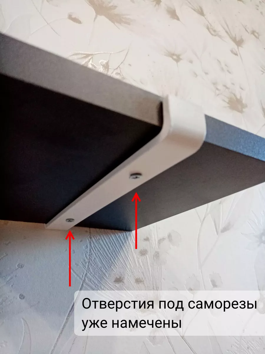 На маленьких полочках отверстия под саморезы уже намечены по центру. На больших - вы можете сами решить где установить кронштейны: ближе или дальше от края полки.