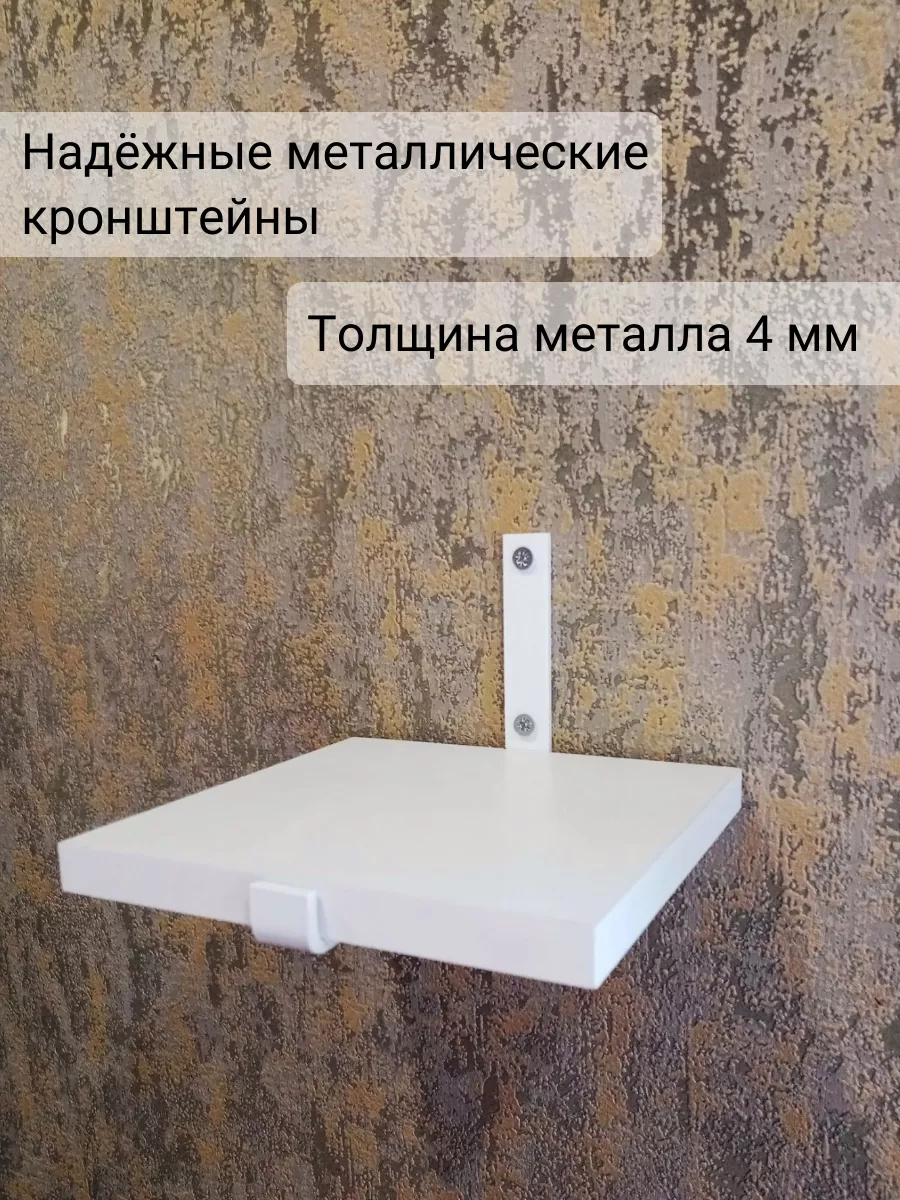 Полки изготовлены из ЛДСП безопасного класса, толщиной 16 мм. Металлические кронштейны покрыты матовой порошковой краской, устойчивой к повреждениям. Толщина металла 4 мм. Кронштейны качественно обработаны и зашлифованы, без зазубрин и заусенцев.