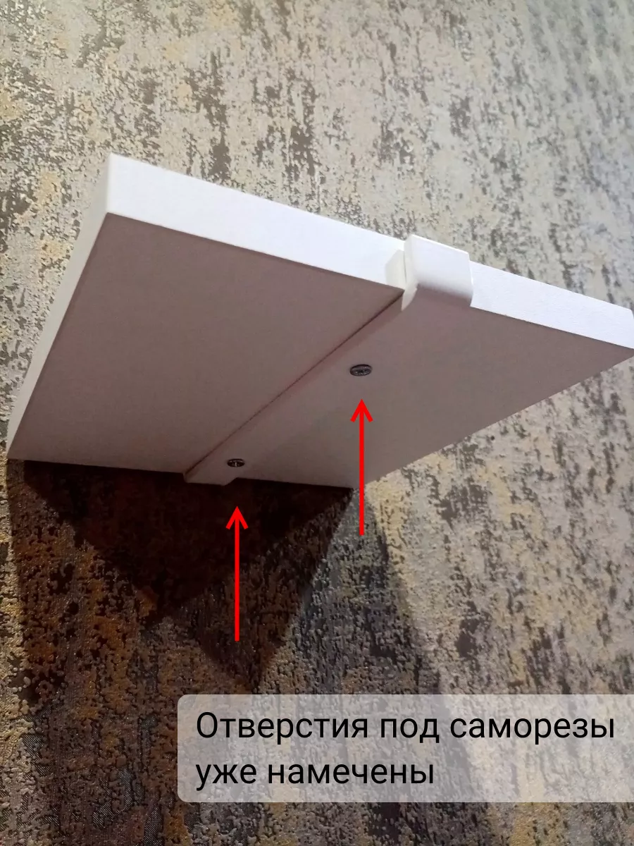 На маленьких полочках отверстия под саморезы уже намечены по центру. На больших - вы можете сами решить где установить кронштейны: ближе или дальше от края полки.