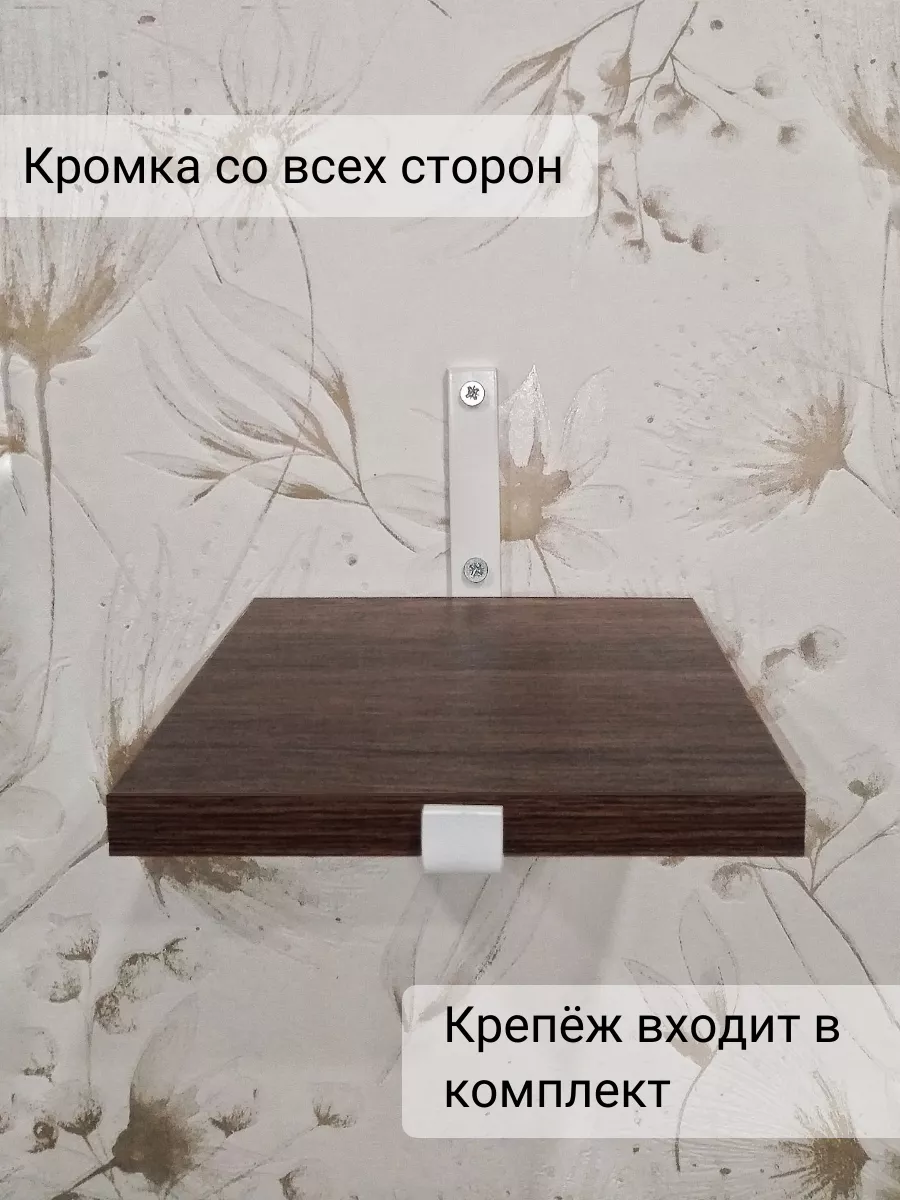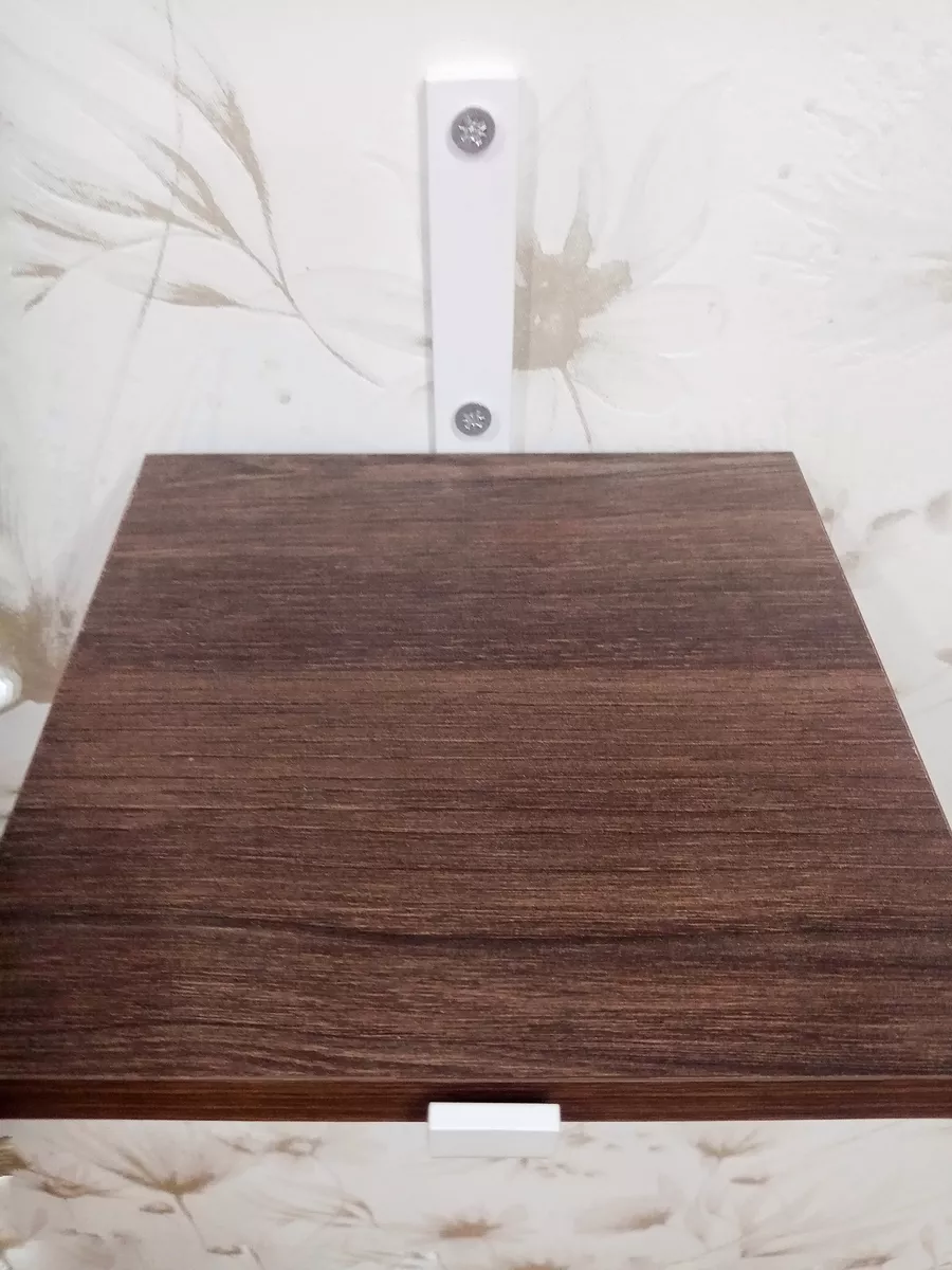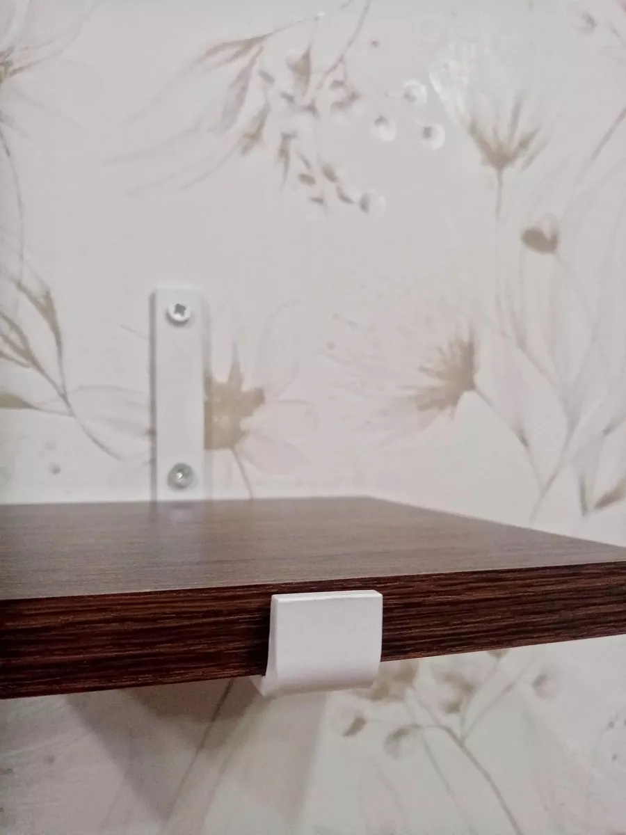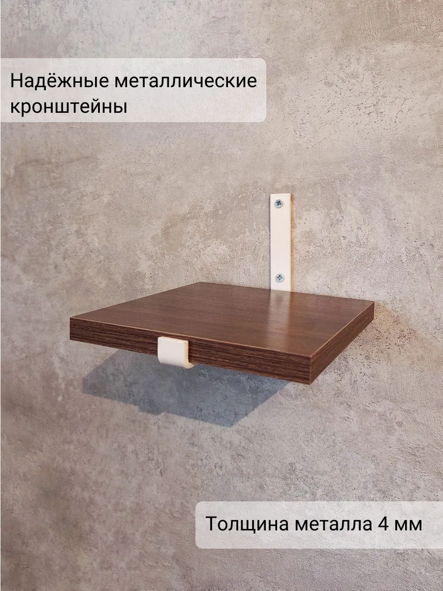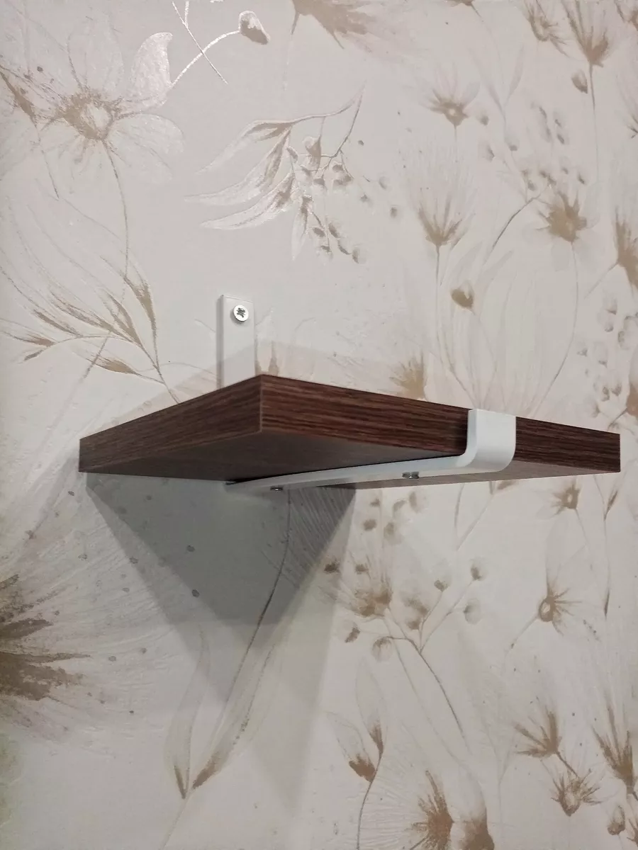 Полки изготовлены из ЛДСП безопасного класса, толщиной 16 мм. Металлические кронштейны покрыты матовой порошковой краской, устойчивой к повреждениям. Толщина металла 4 мм. Кронштейны качественно обработаны и зашлифованы, без зазубрин и заусенцев.