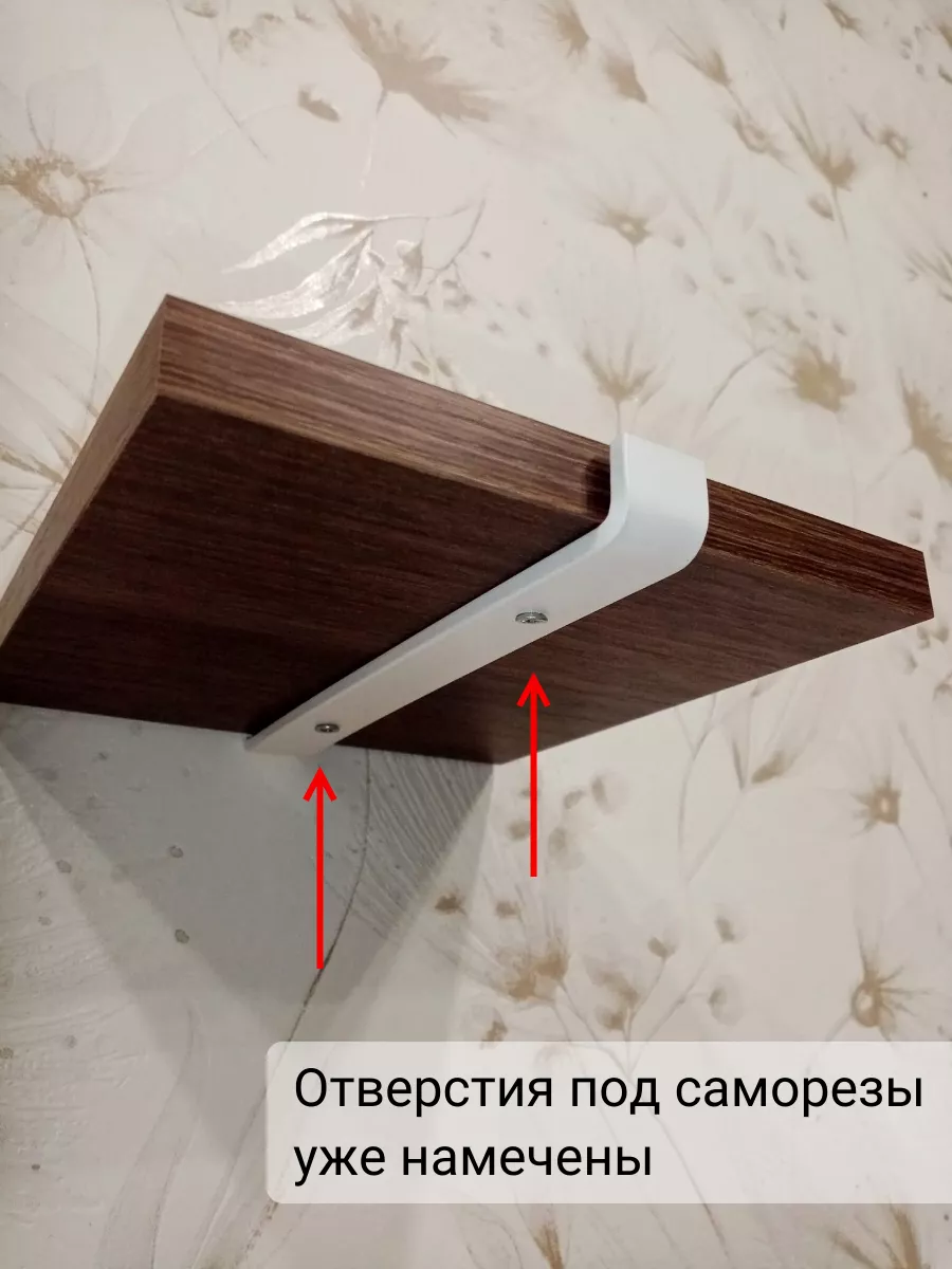 На маленьких полочках отверстия под саморезы уже намечены по центру. На больших - вы можете сами решить где установить кронштейны: ближе или дальше от края полки.