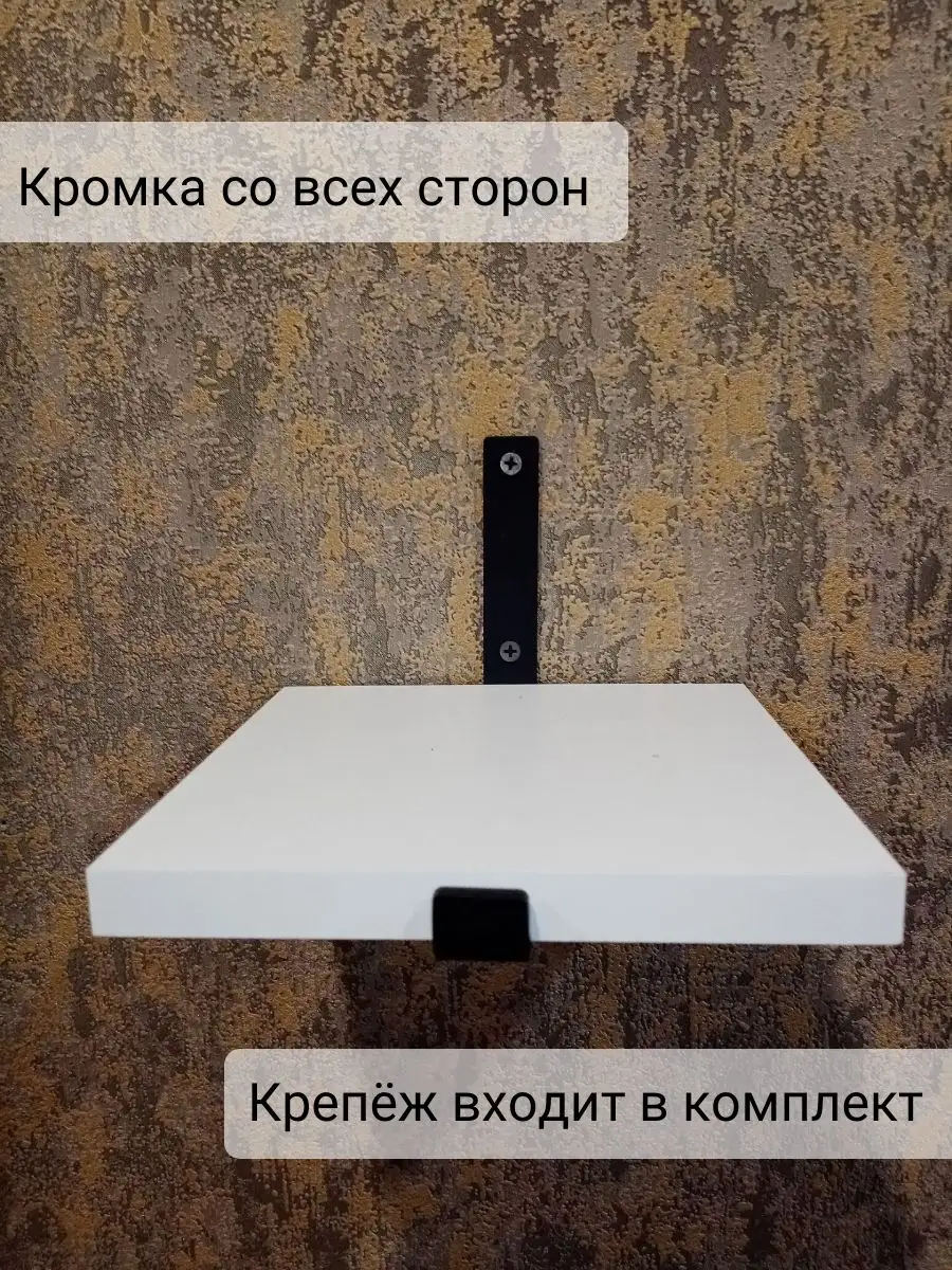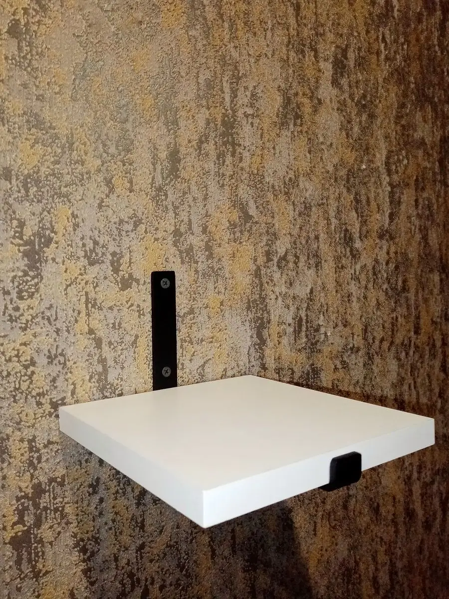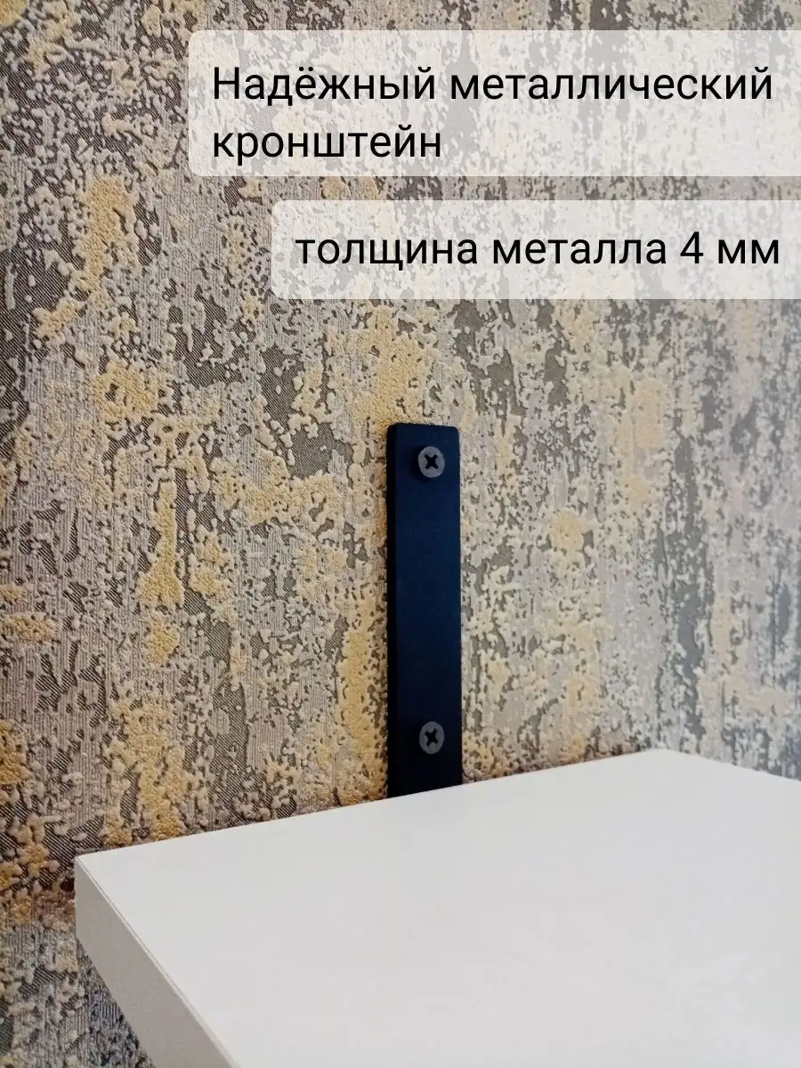 Полки изготовлены из ЛДСП безопасного класса, толщиной 16 мм. Металлические кронштейны покрыты матовой порошковой краской, устойчивой к повреждениям. Толщина металла 4 мм. Кронштейны качественно обработаны и зашлифованы, без зазубрин и заусенцев.