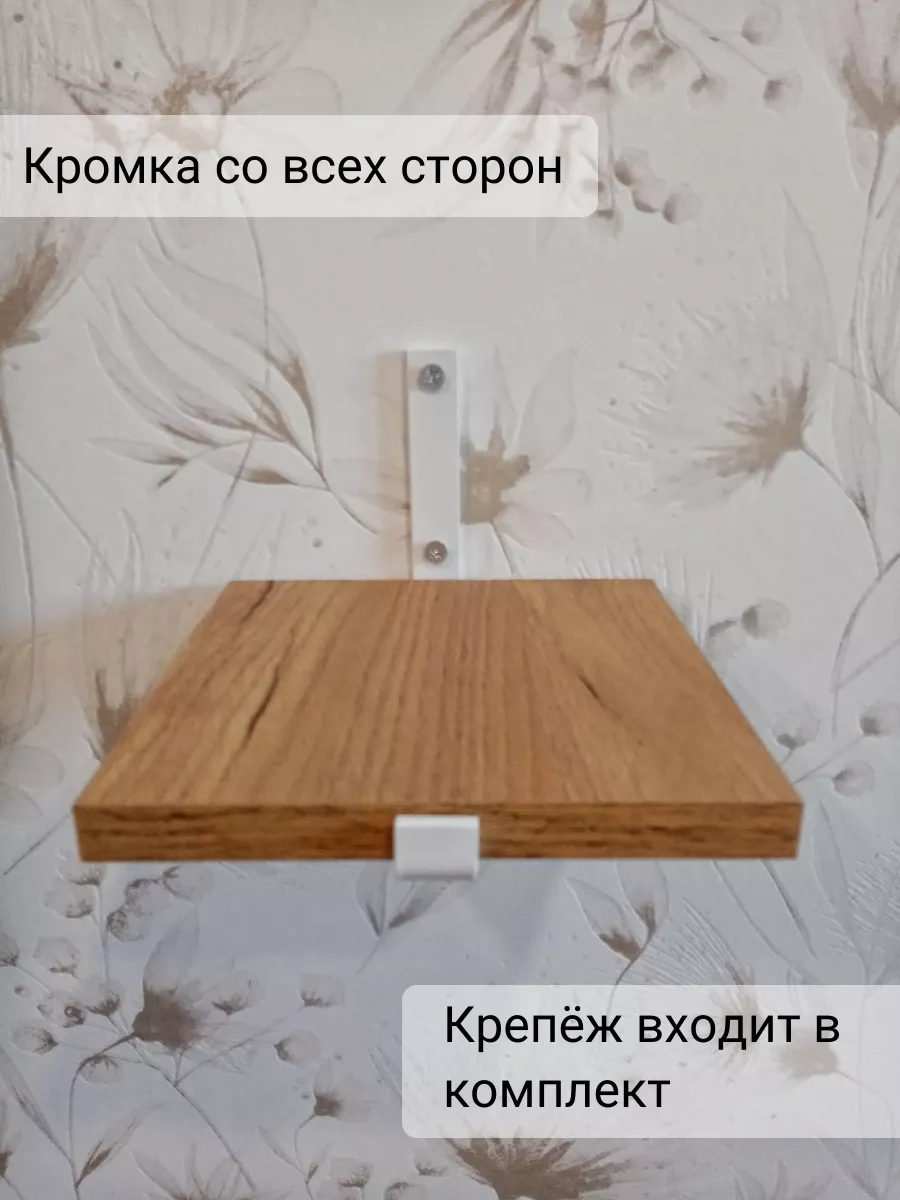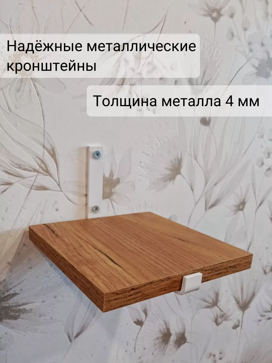 Полки изготовлены из ЛДСП безопасного класса, толщиной 16 мм. Металлические кронштейны покрыты матовой порошковой краской, устойчивой к повреждениям. Толщина металла 4 мм. Кронштейны качественно обработаны и зашлифованы, без зазубрин и заусенцев.