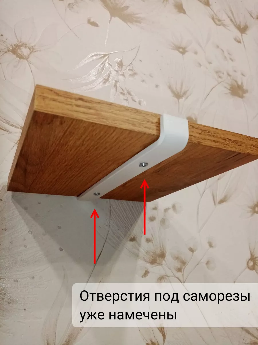 На маленьких полочках отверстия под саморезы уже намечены по центру. На больших - вы можете сами решить где установить кронштейны: ближе или дальше от края полки.