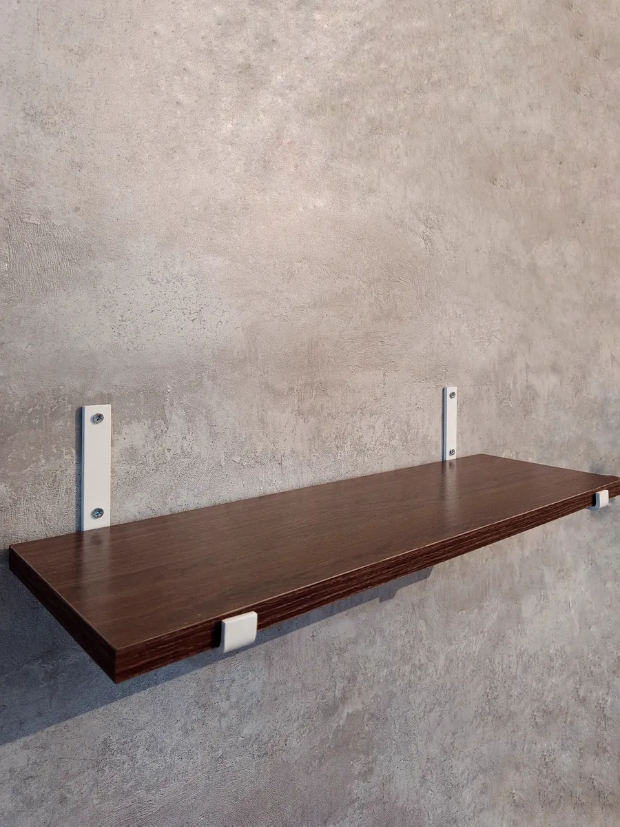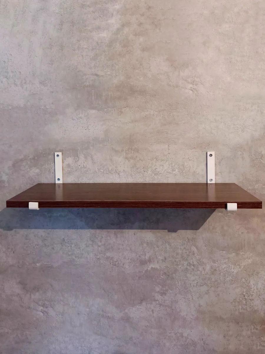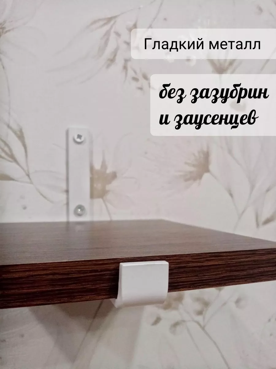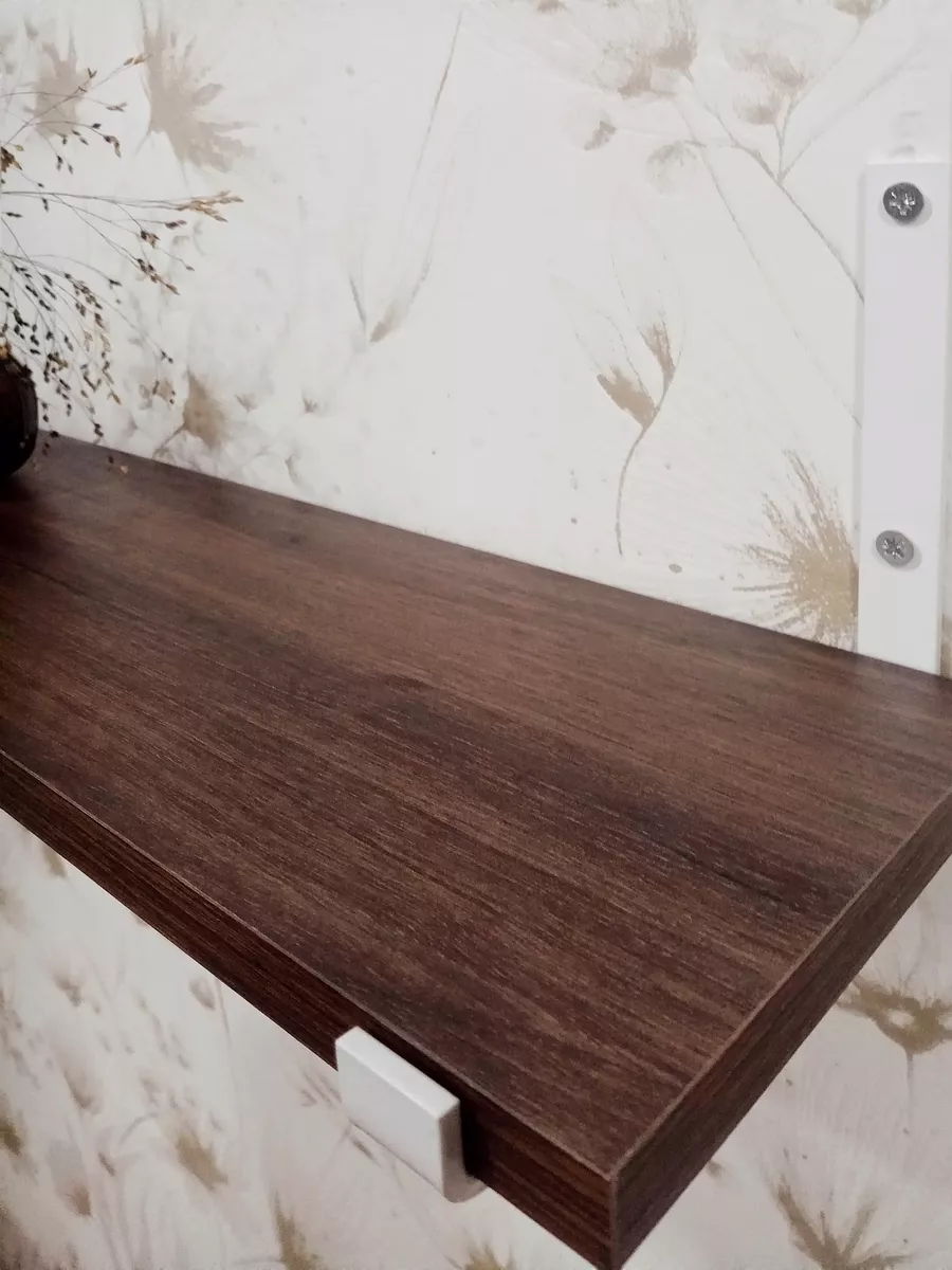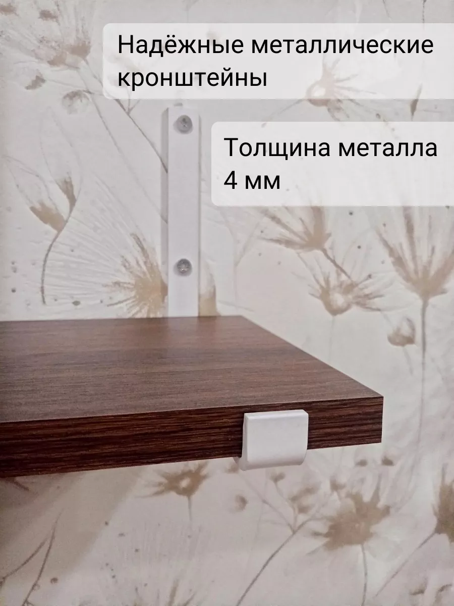 Полки изготовлены из ЛДСП безопасного класса, толщиной 16 мм. Металлические кронштейны покрыты матовой порошковой краской, устойчивой к повреждениям. Толщина металла 4 мм. Кронштейны качественно обработаны и зашлифованы, без зазубрин и заусенцев.