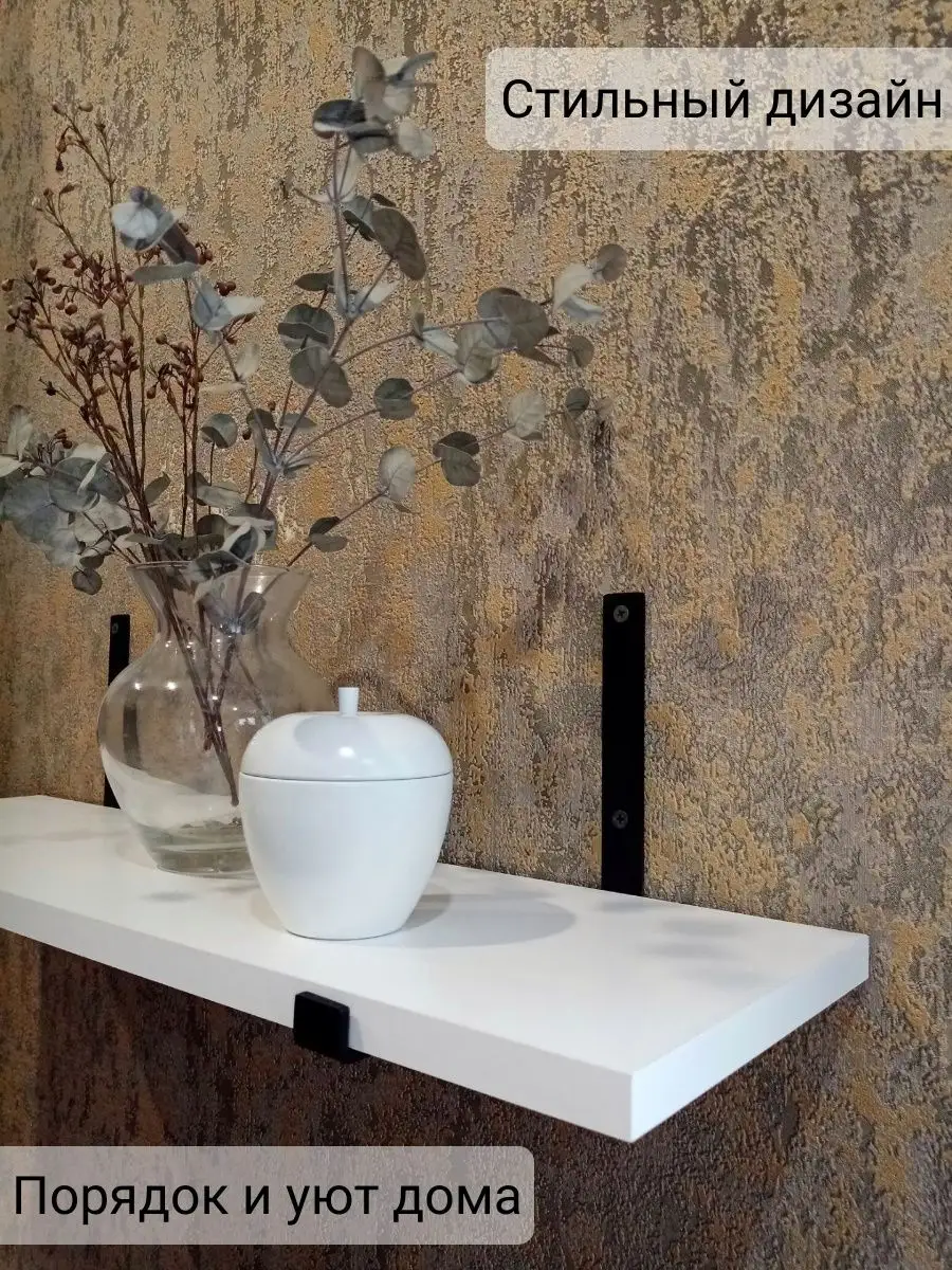 Компактные настенные полки на металлических кронштейнах станут стильным дополнением к пространству любого помещения.