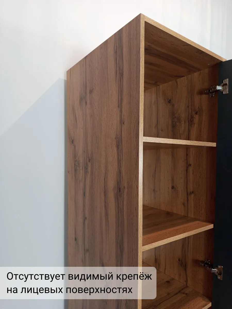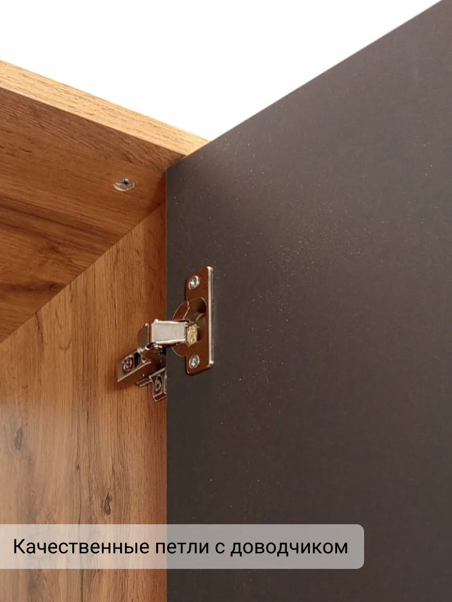Корпус шкафа изготовлен из ЛДСП, который отличается высокой прочностью и долговечностью. Это значит, что он будет служить вам долго без потери внешнего вида.