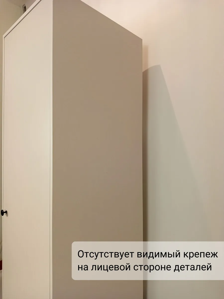Весь крепеж спрятан внутри шкафа. Снаружи на боковинах нет никаких отверстий.