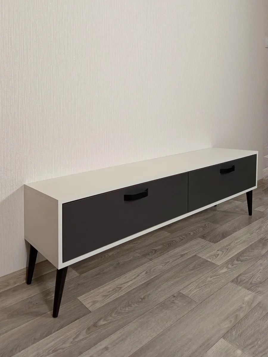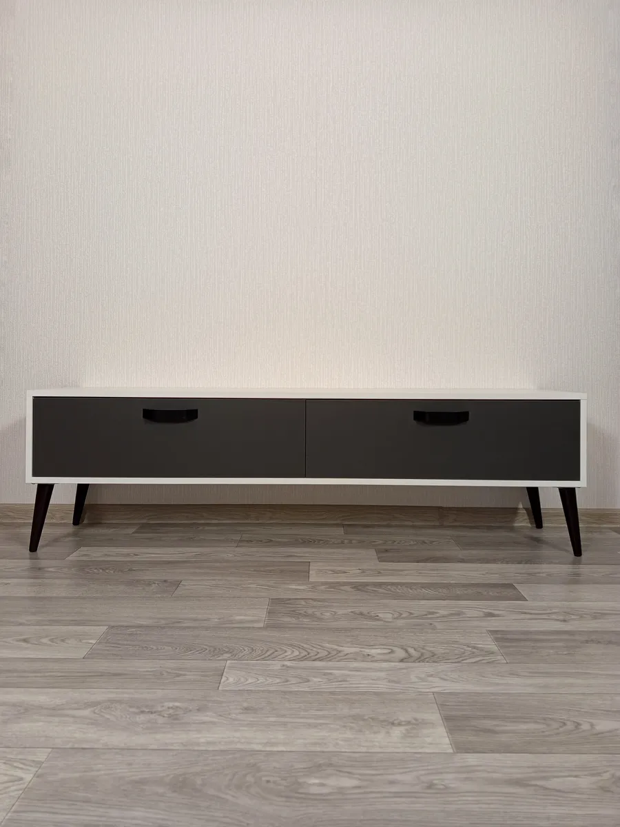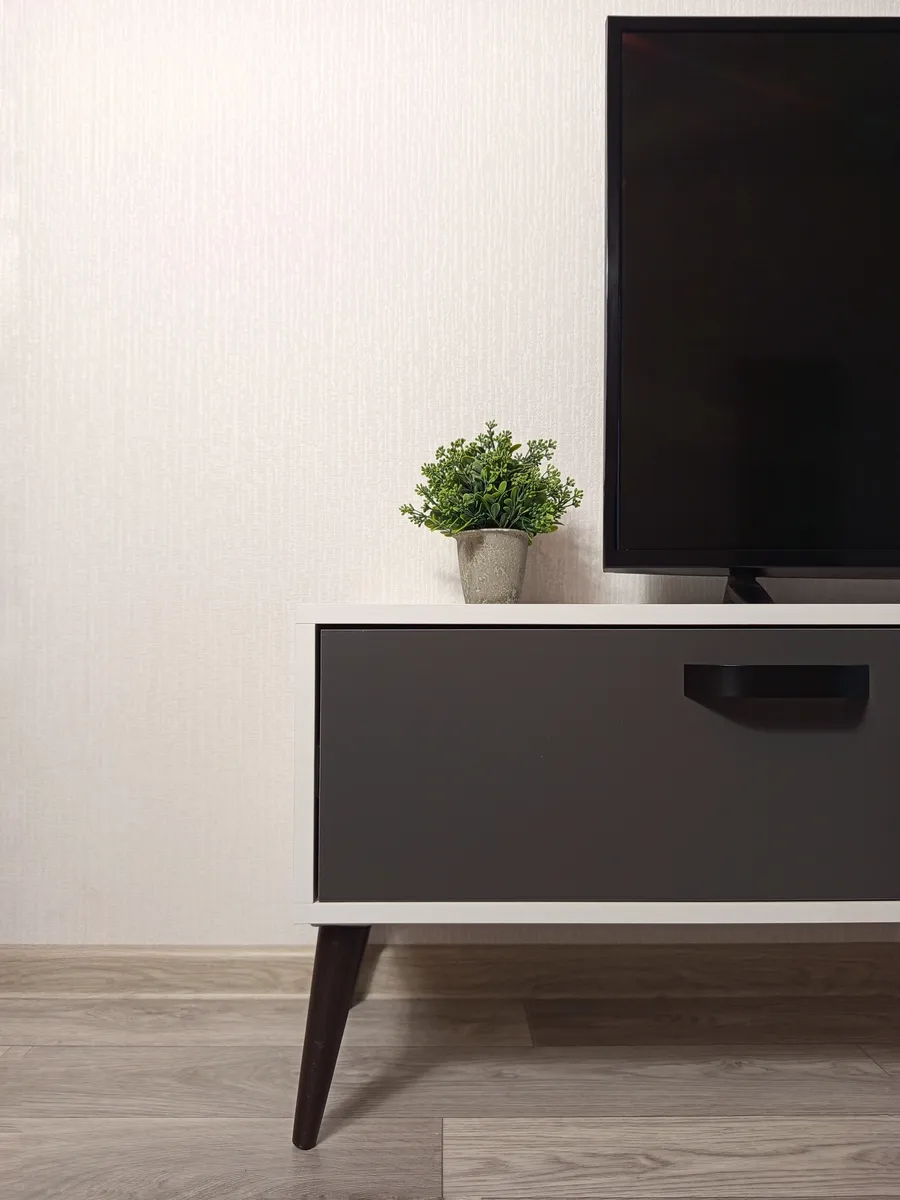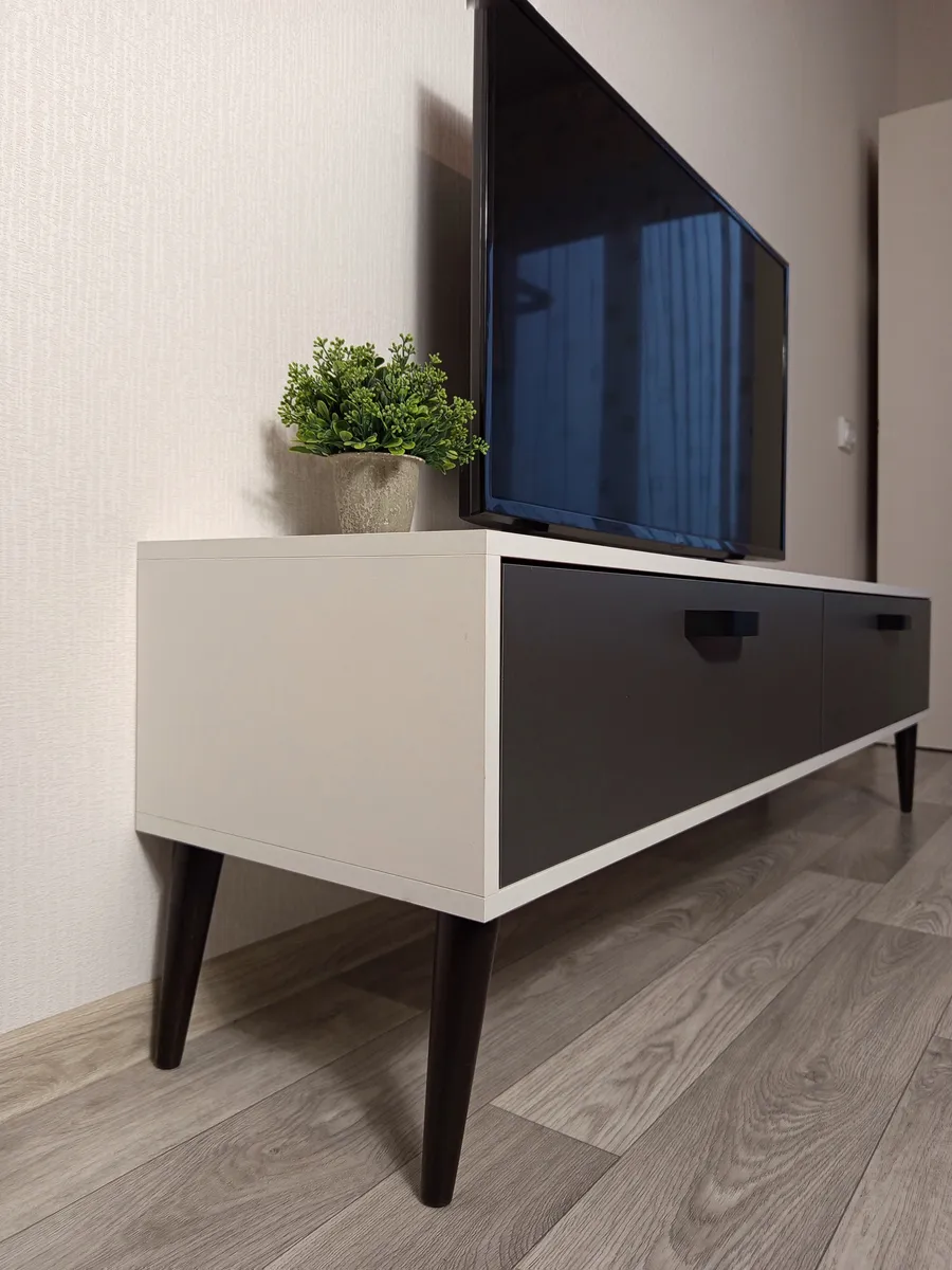 - Дополнительные особенности: Наличие ящиков делает тумбу удобной для хранения различных вещей, таких как провода, DVD-диски и другие аксессуары.