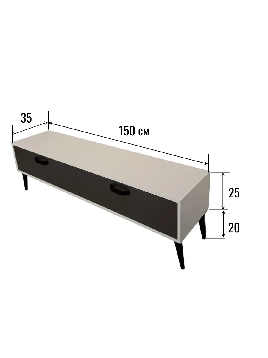 - Размеры: Ширина 150 см, высота 40 см (вместе с ножками), глубина 35 см.