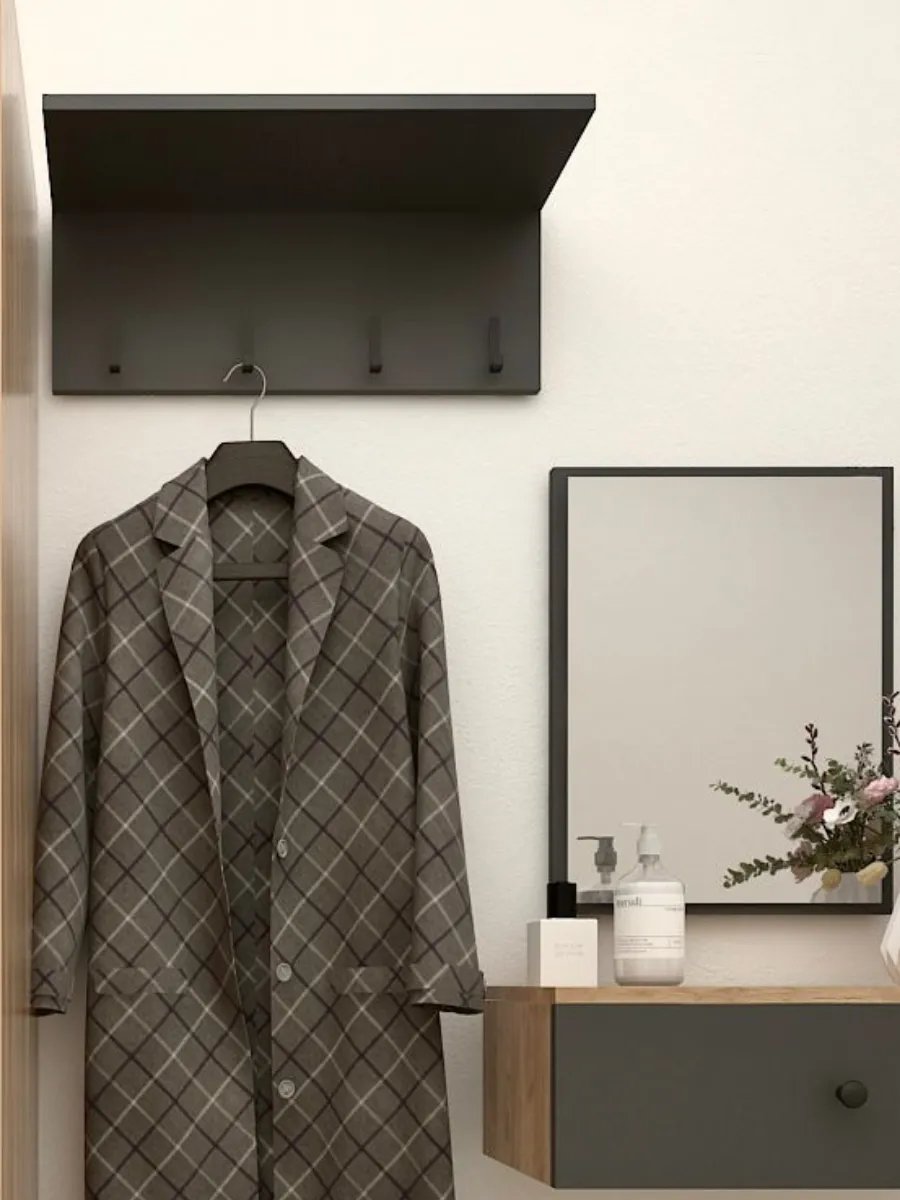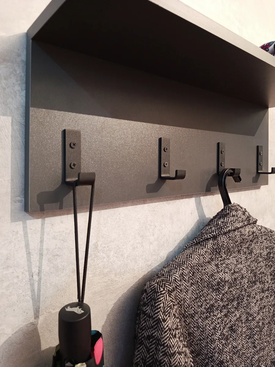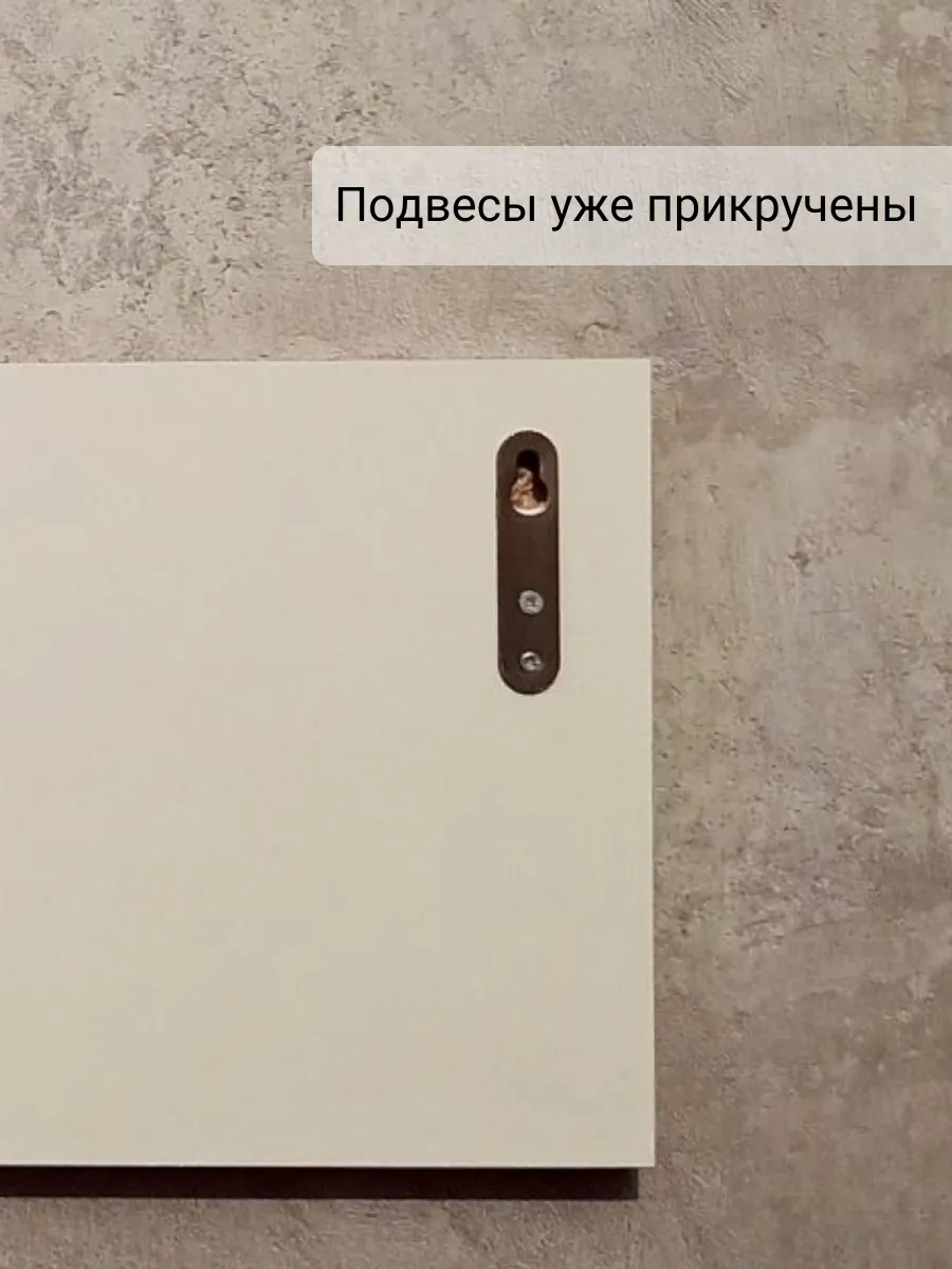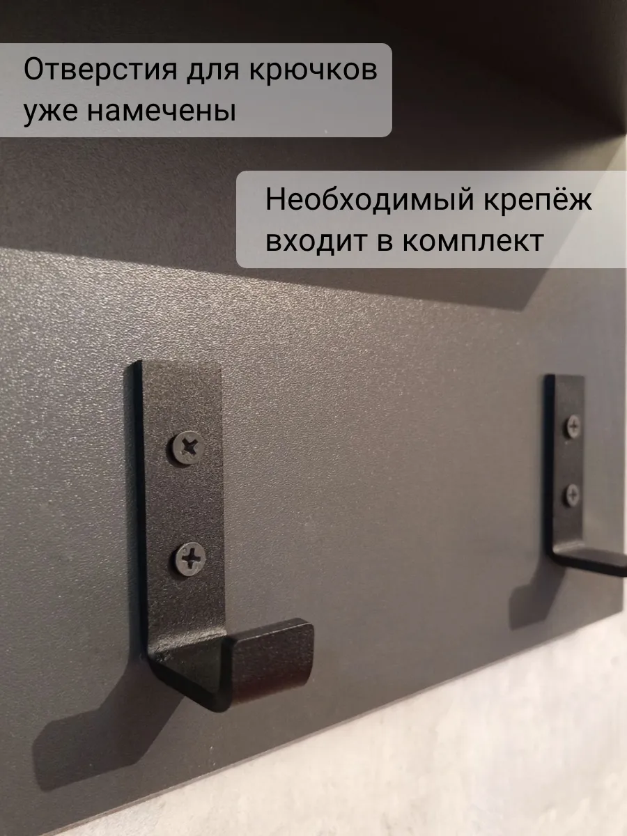 Вешалка крепится на специальные мебельные подвесы, которые надежно удерживают её на стене. Подвесы уже прикручены с обратной стороны вешалки.