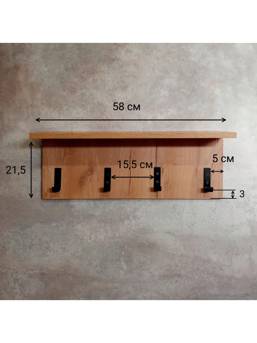 Стильная настенная вешалка с крючками для верхней одежды в стиле лофт отлично впишется в интерьер любой прихожей. Надежные металлические крючки покрыты порошковой краской, устойчивой к механическим повреждениям. Крючки выдерживают высокую нагрузку и не погнутся при длительном использовании.