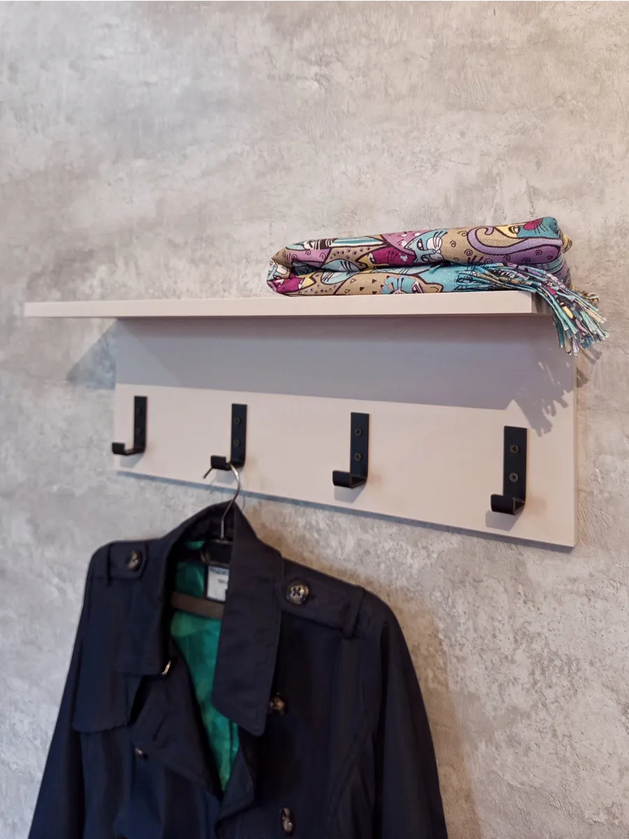 Стильная настенная вешалка с крючками для верхней одежды в стиле лофт отлично впишется в интерьер любой прихожей. Надежные металлические крючки покрыты порошковой краской, устойчивой к механическим повреждениям. Крючки выдерживают высокую нагрузку и не погнутся при длительном использовании.